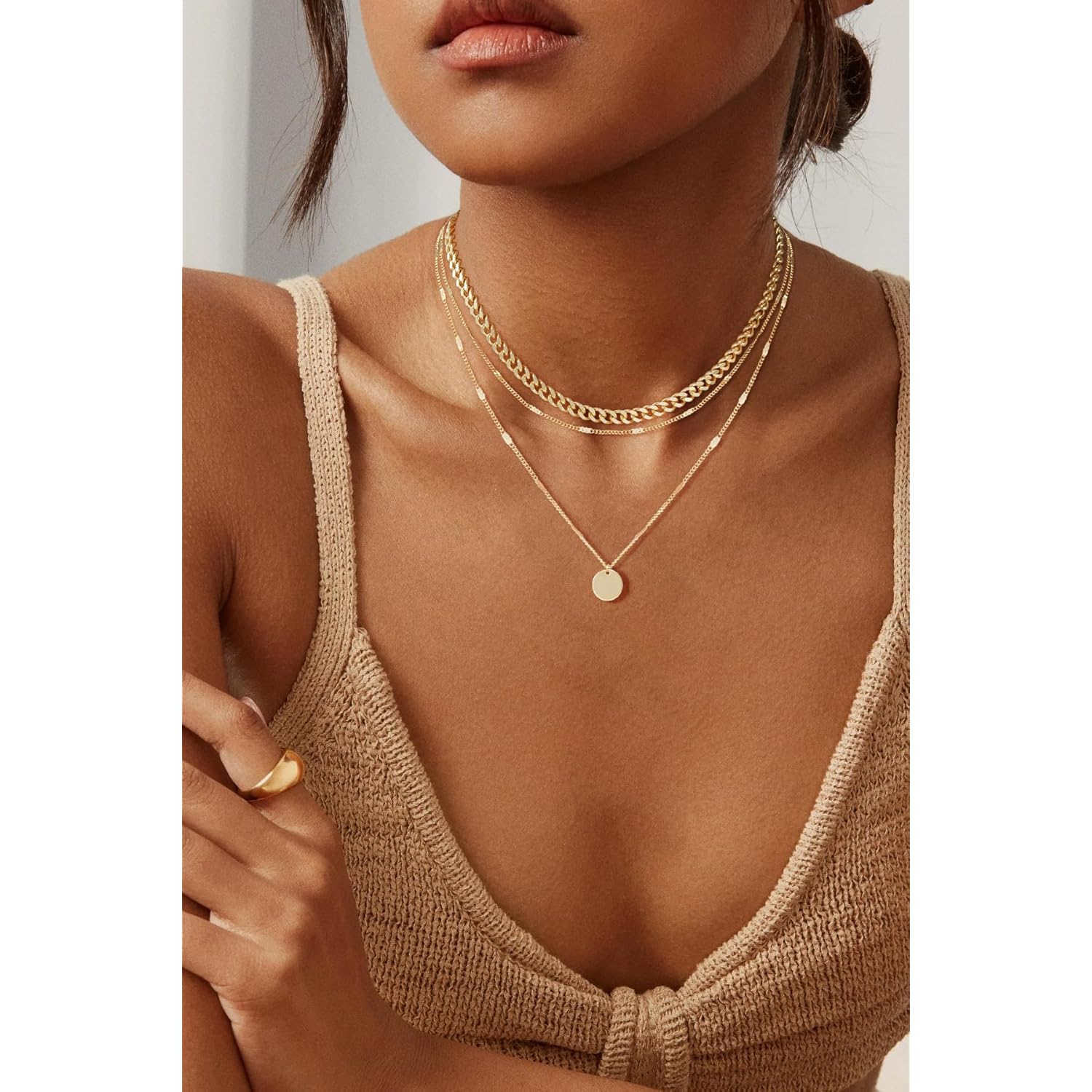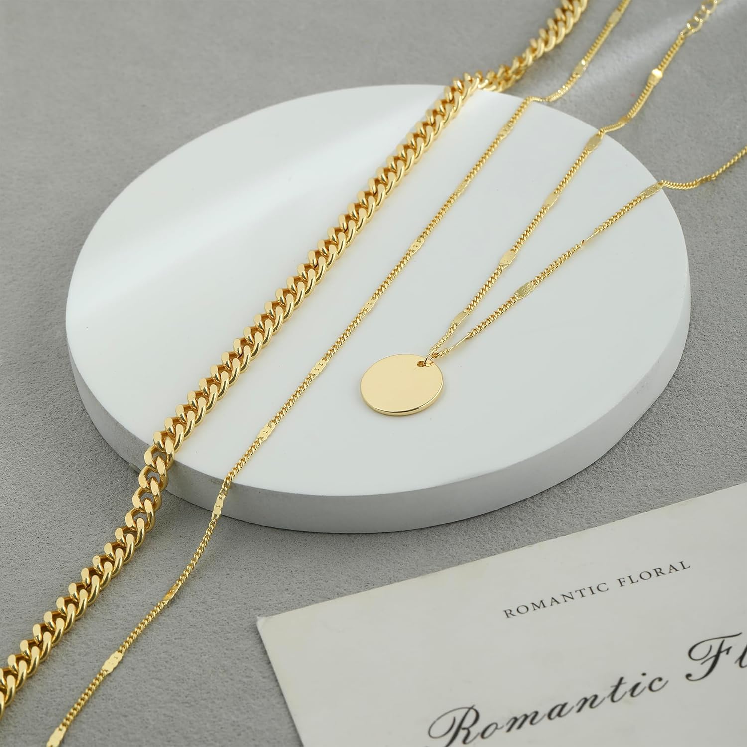 • Layered necklace size: Shorter chain (cuban chain) length is 13.8 inch plus 2 inch extension chain adjustable width of chain is 5mm, the second necklace (dot necklace) length is 15 inch plus 2 inch extension chain adjustable, the longest chain (coin necklace) length is 17 inch plus 2 inch extension chain adjustable. Each necklace has an adjustable five centimetre extension. Please check the size detail before purchase