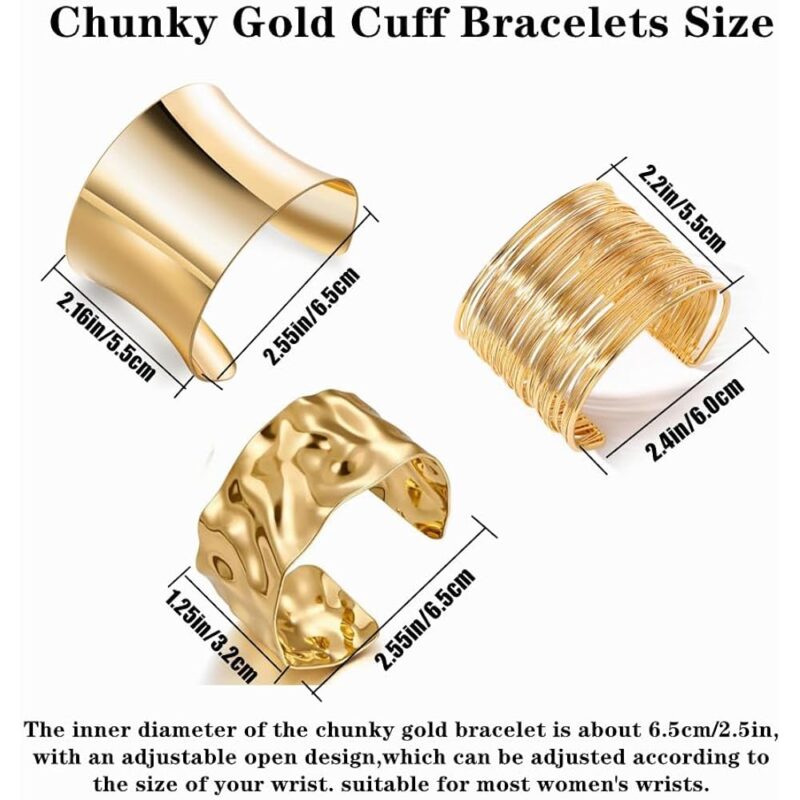 - Dimensions: Chunky gold bracelet is about 6.5cm/2.5in, the length is about 20.4cm/8in, with an adjustable open design, which can be adjusted according to the size of your wrist, suitable for most women’s wrists.