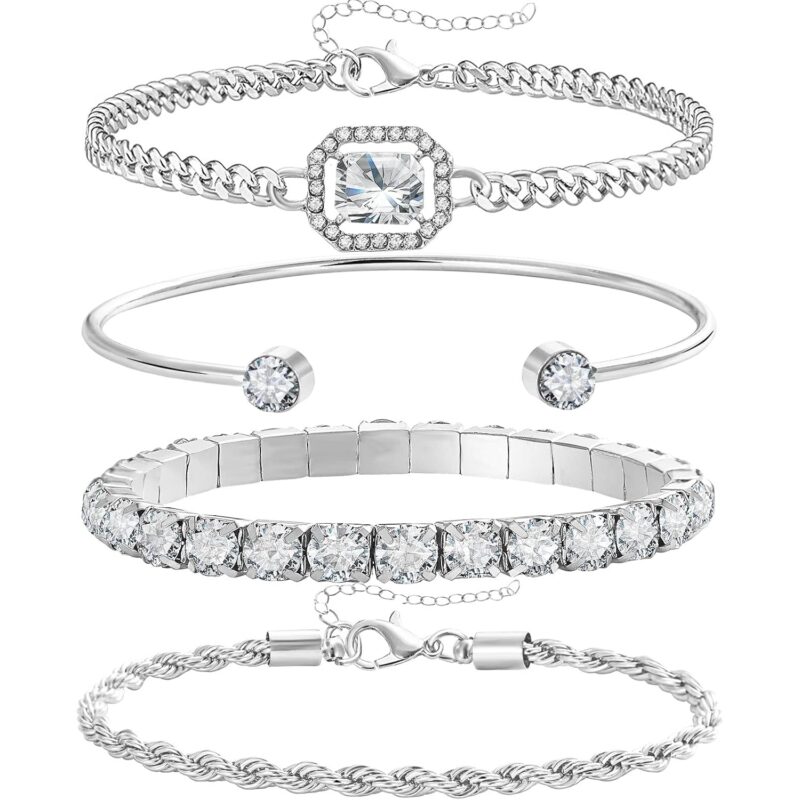 【Quality】: Silver Bracelets is made of high alloy with AAA+ cubic zirconia, 14K real silver plate surface, nickle free lead free, and hypoallergenic, no harm to skin.