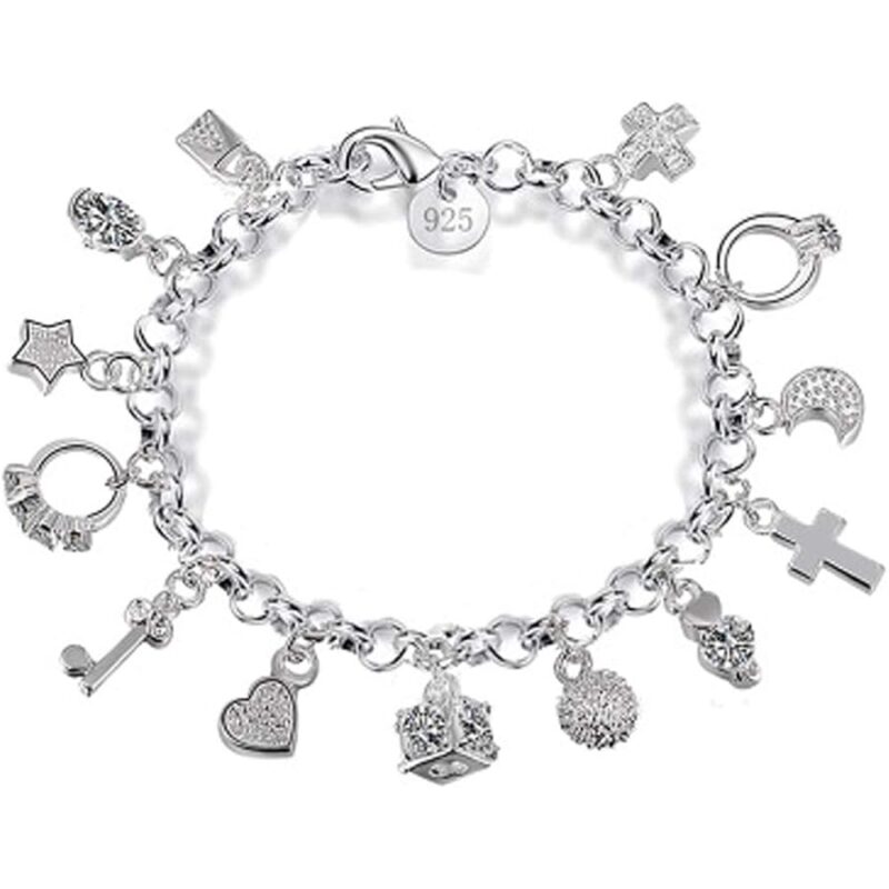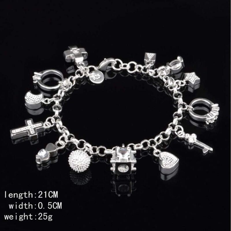 - Material:S925 silver plated star ring key heart cross moon cubic zircon lock pendant bracelet high quality