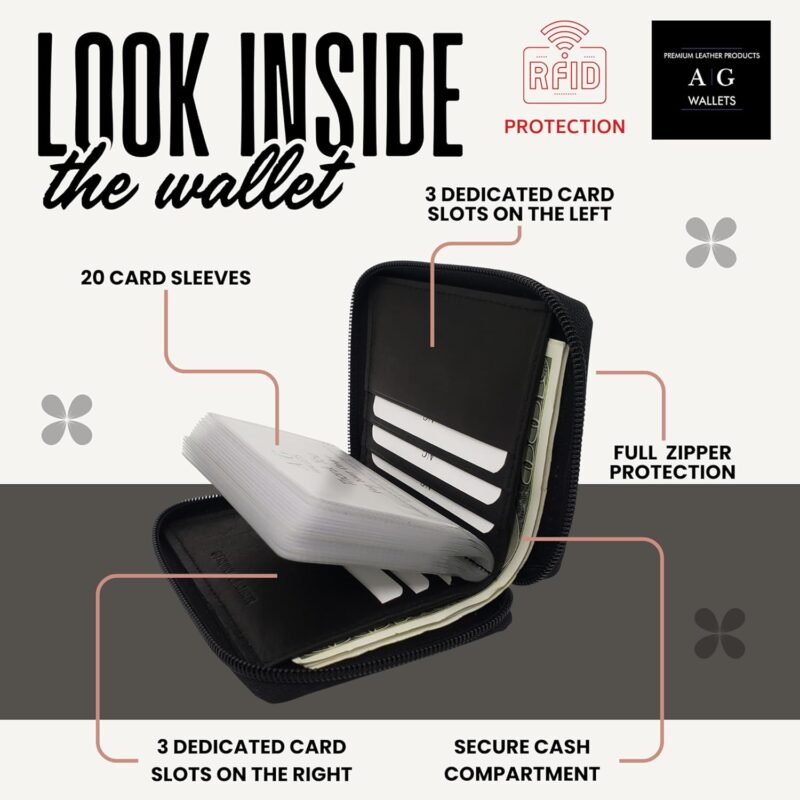 Wallet for Men Slim Leather Wallets for 13-17 Cards, RFID Blocking Thin Card Holder Wallet with ID Window & Large Capacity Cash Slot, Minimalist Bifold Small Wallet for Front Pocket, Gift for Men