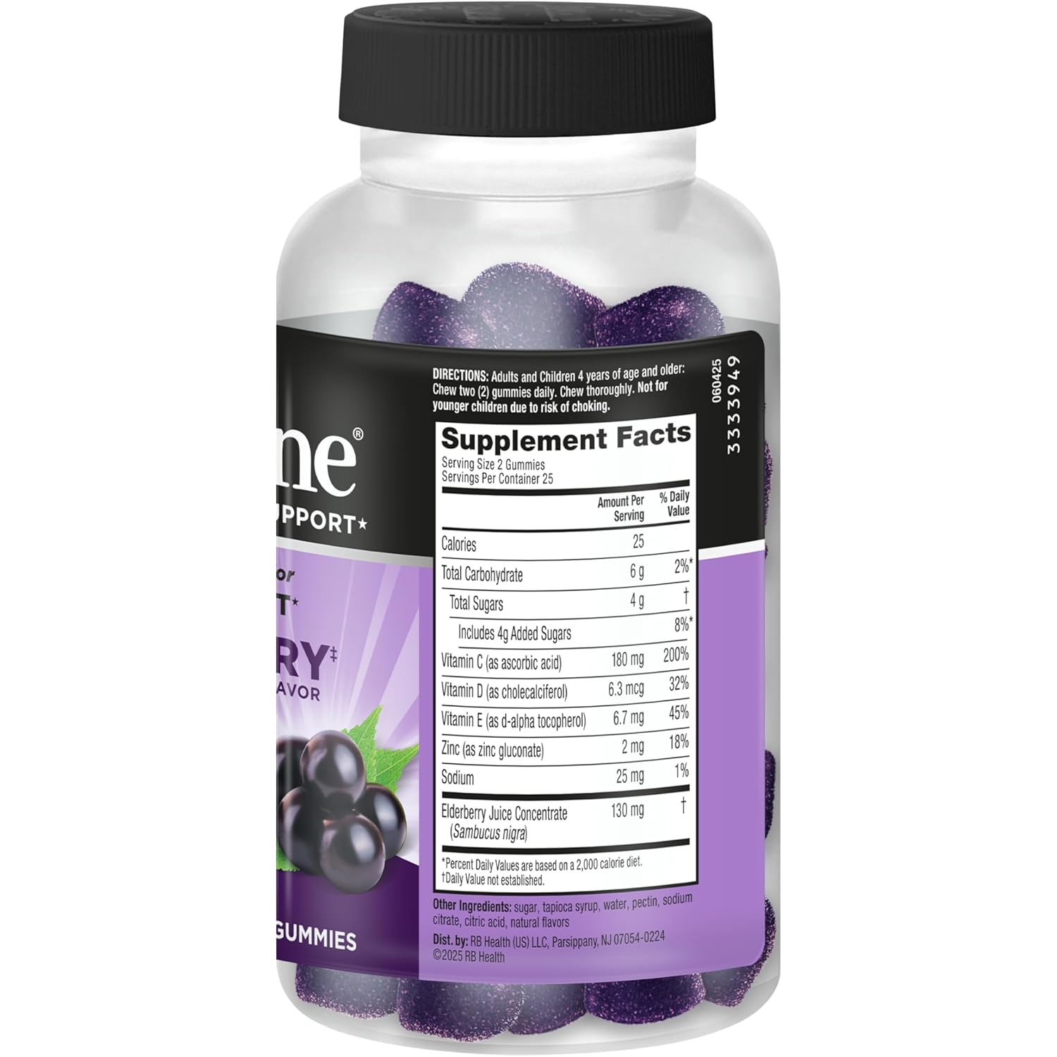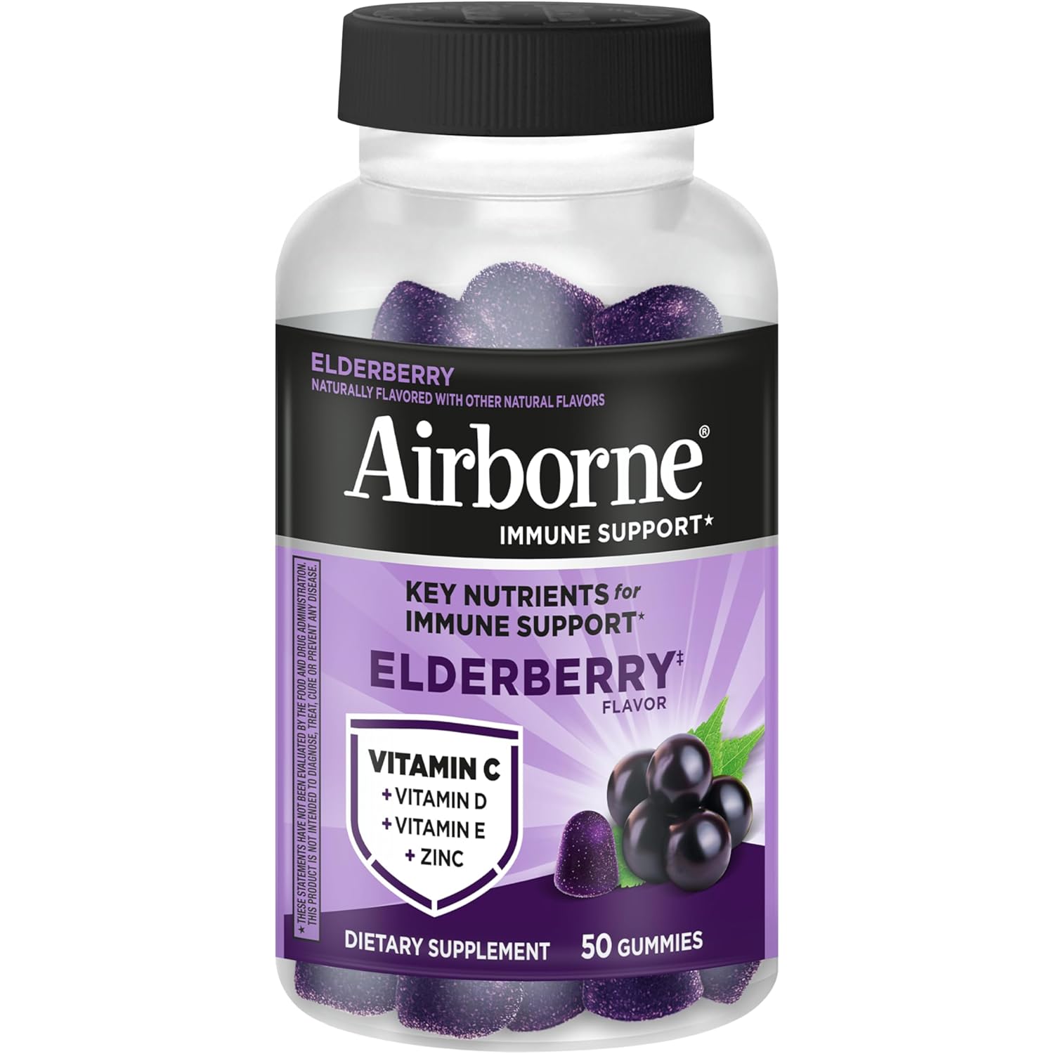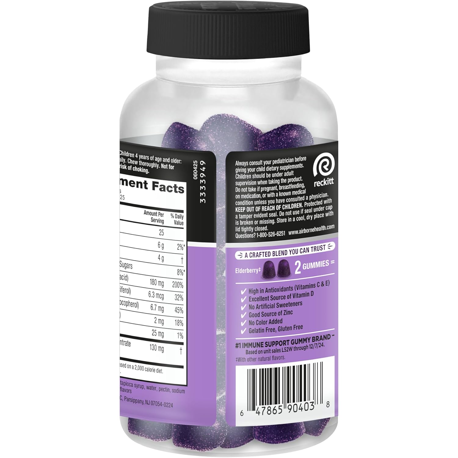 Airborne Elderberry + Zinc & Vitamin C Gummies For Adults, Immune Support Vitamin D & Zinc Gummies With Powerful Antioxidant Vitamins C D & E – 50 Gummies, Elderberry Flavor