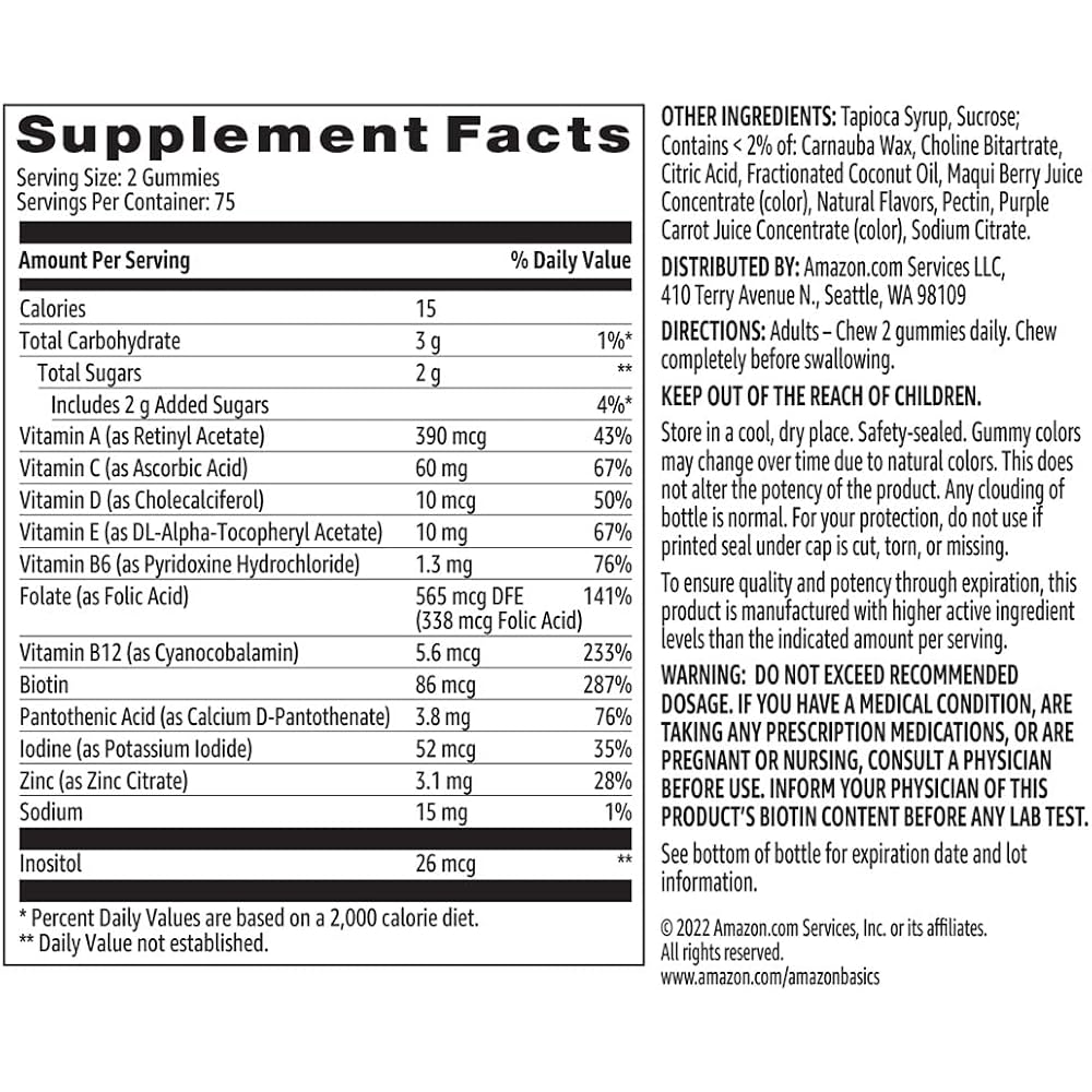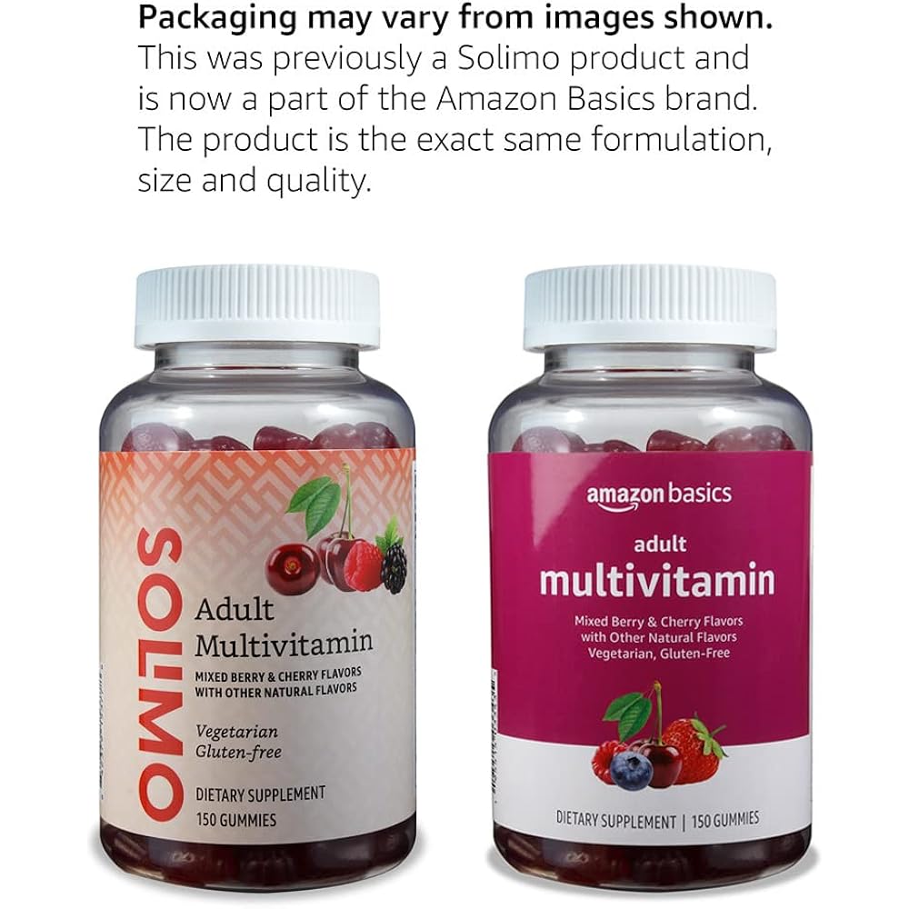 Amazon Basics Adult Multivitamin Gummies, Mixed Berry & Cherry, 150 Gummies, 75-Day Supply, Pack of 1 (Previously Solimo) 150 Count (Pack of 1)