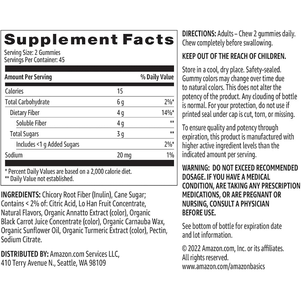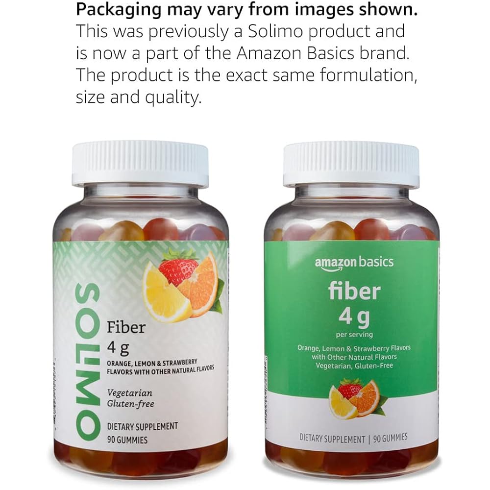 Amazon Basics Fiber Gummies for Digestive Health and Regularity, Orange, Lemon & Strawberry Flavors, 90 Count, Pack of 1 (Previously Solimo)