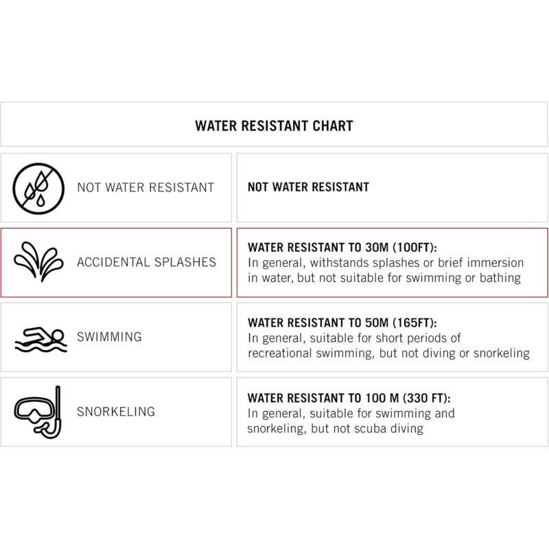 - CARE: Water resistant to 100 Feet (30m); watches should be treated like jewelry; to best protect your watch, be sure to be conscious when spraying perfume, hair spray, etc.; a jewelry polishing cloth can be used to polish the watch and clean it of fingerprints