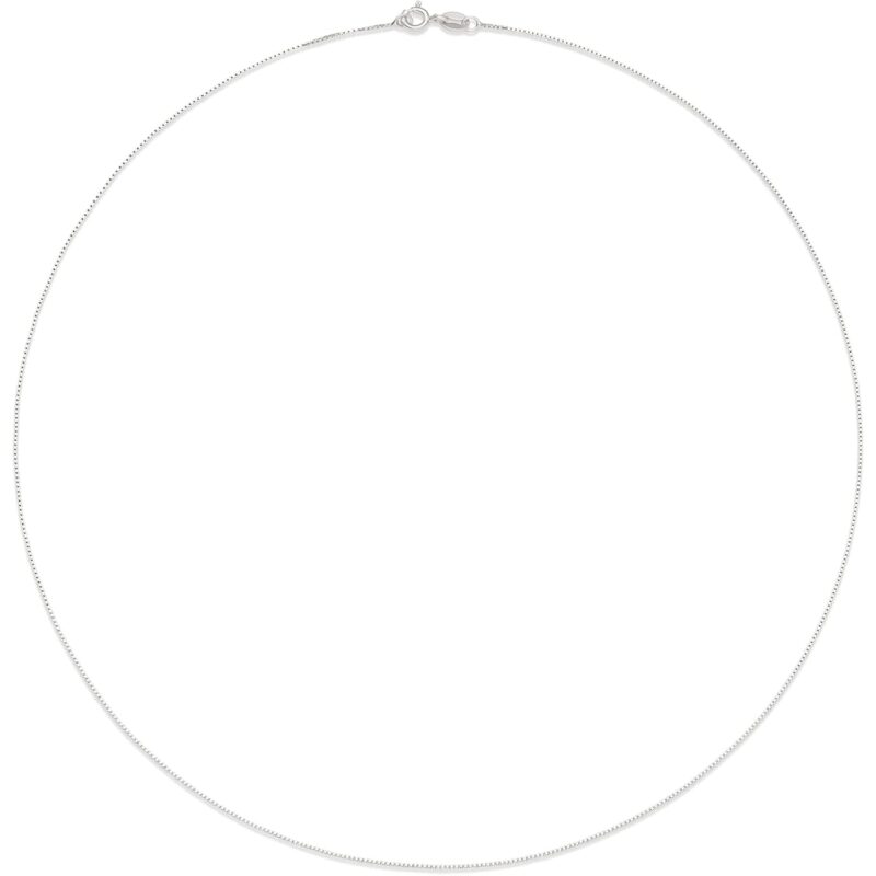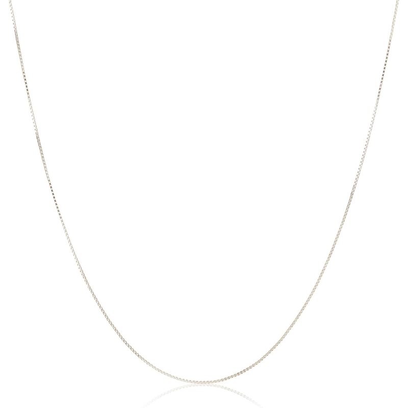 - STYLE: Sterling Silver box chain necklace is 18″ long and 0.8mm wide; this chain is thin, light and versatile, it is ideal for small to medium pendants; perfect on its own or for stacking and layering with your favorite Amazon Essentials chains.