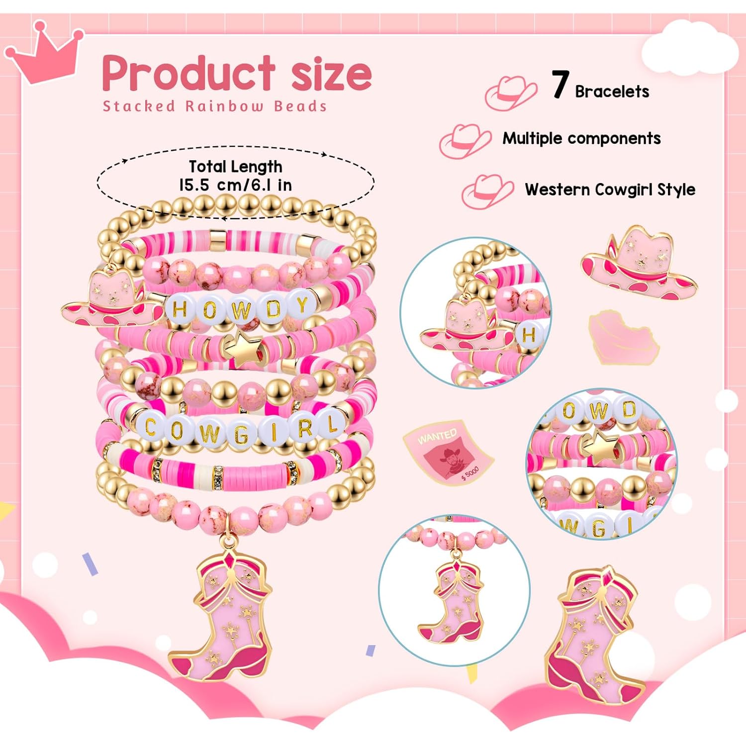 - 【Stackable and Versatile】7 unique bracelets that can be worn together or separately, allowing for versatile styling options. colorful and stretch, allowing you to customize your look. Great for parties, festivals, or any Western-themed event.