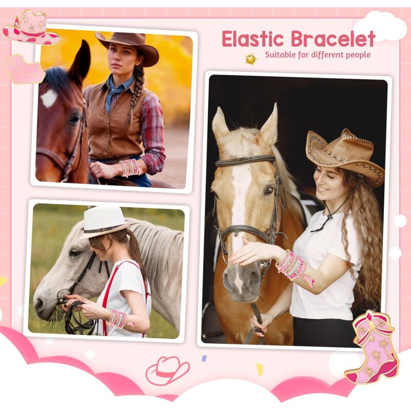 - ăWestern Cowgirl Bracelets SetăA stylish addition to any jewelry collection, these colorful beads stretch bracelets feature a unique western cowgirl pattern accents. Add a touch of the wild west to your outfit with this classic cowgirl-inspired stretch bracelet.