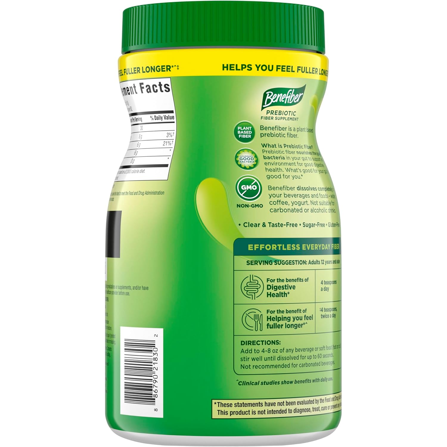 - DISSOLVES CLEAR AND COMPLETELY: Benefiber Prebiotic Fiber Supplement Powder is taste free, grit free, and dissolves clear and completely when you mix into non carbonated beverages and food (2)