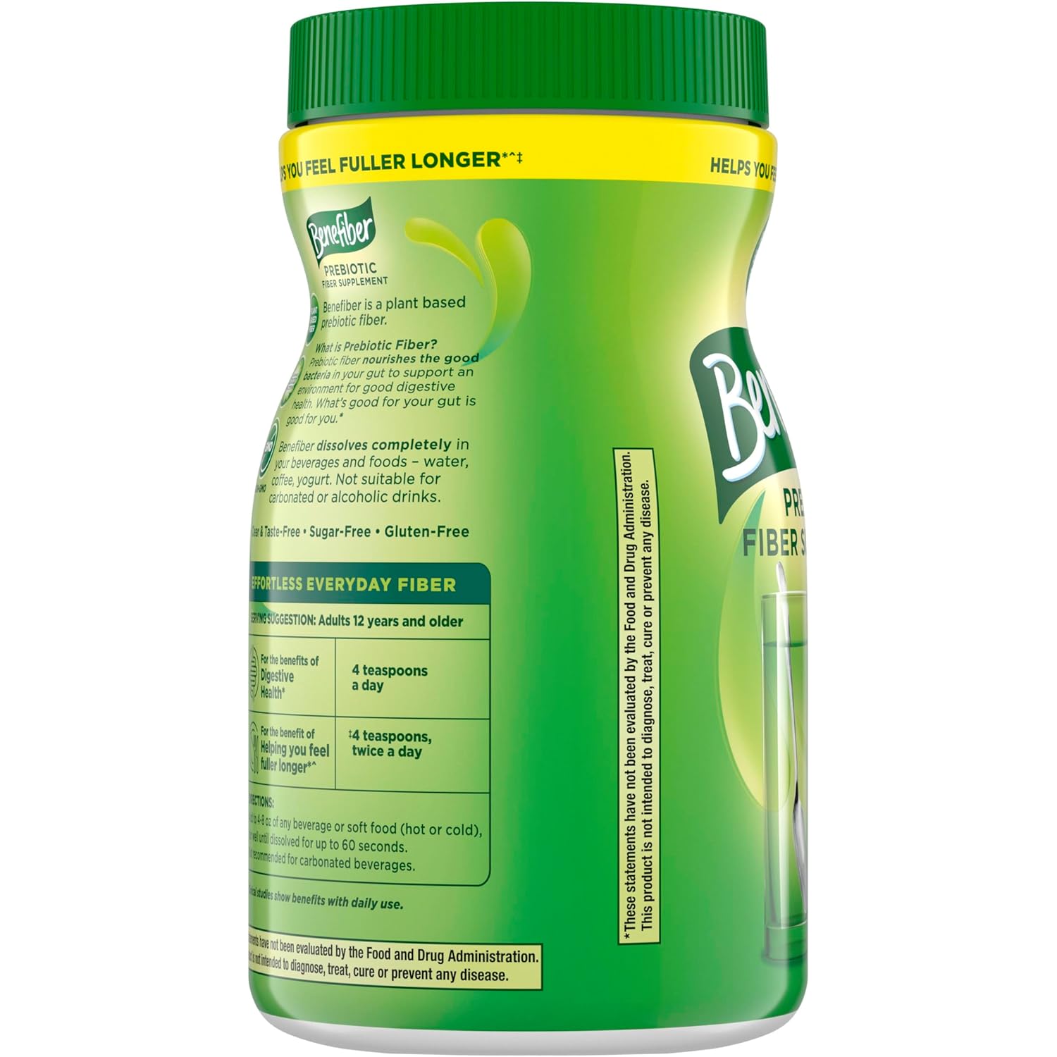 - SUGAR FREE, GLUTEN FREE, AND LOW CALORIE: Benefiber Prebiotic Fiber Supplement Powder contains no sugar, gluten or artificial flavors