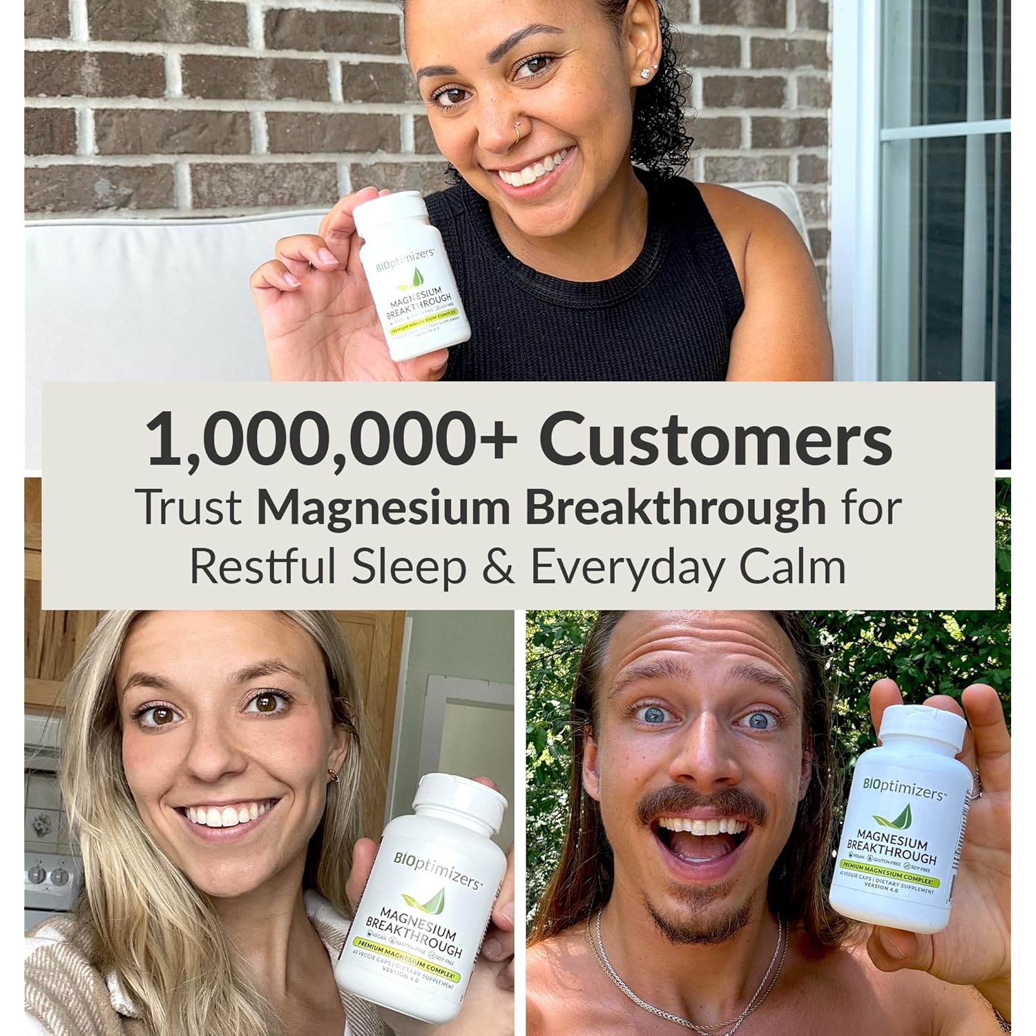 BIOptimizers Magnesium Breakthrough Supplement with 500mg – 7 Forms of Magnesium: Glycinate, Malate, Citrate, and More – Natural Support for Sleep and Cognitive Function -60 Capsules- Calming Vitamins