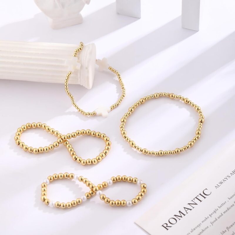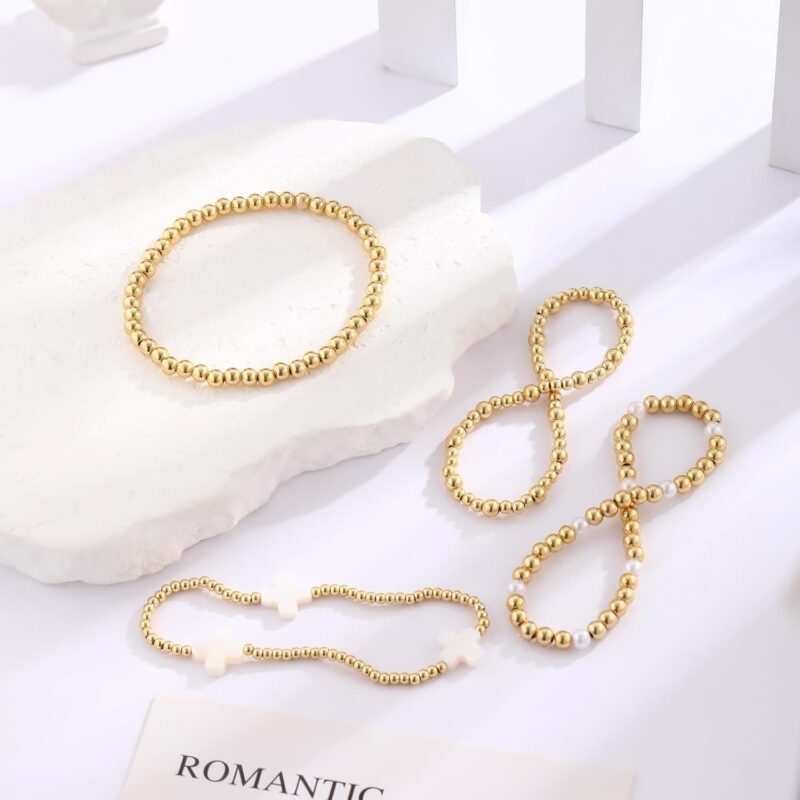 4Pcs Gold Cross Beaded Bracelets Set, These bracelets are suitable for being worn stacked as well as individually