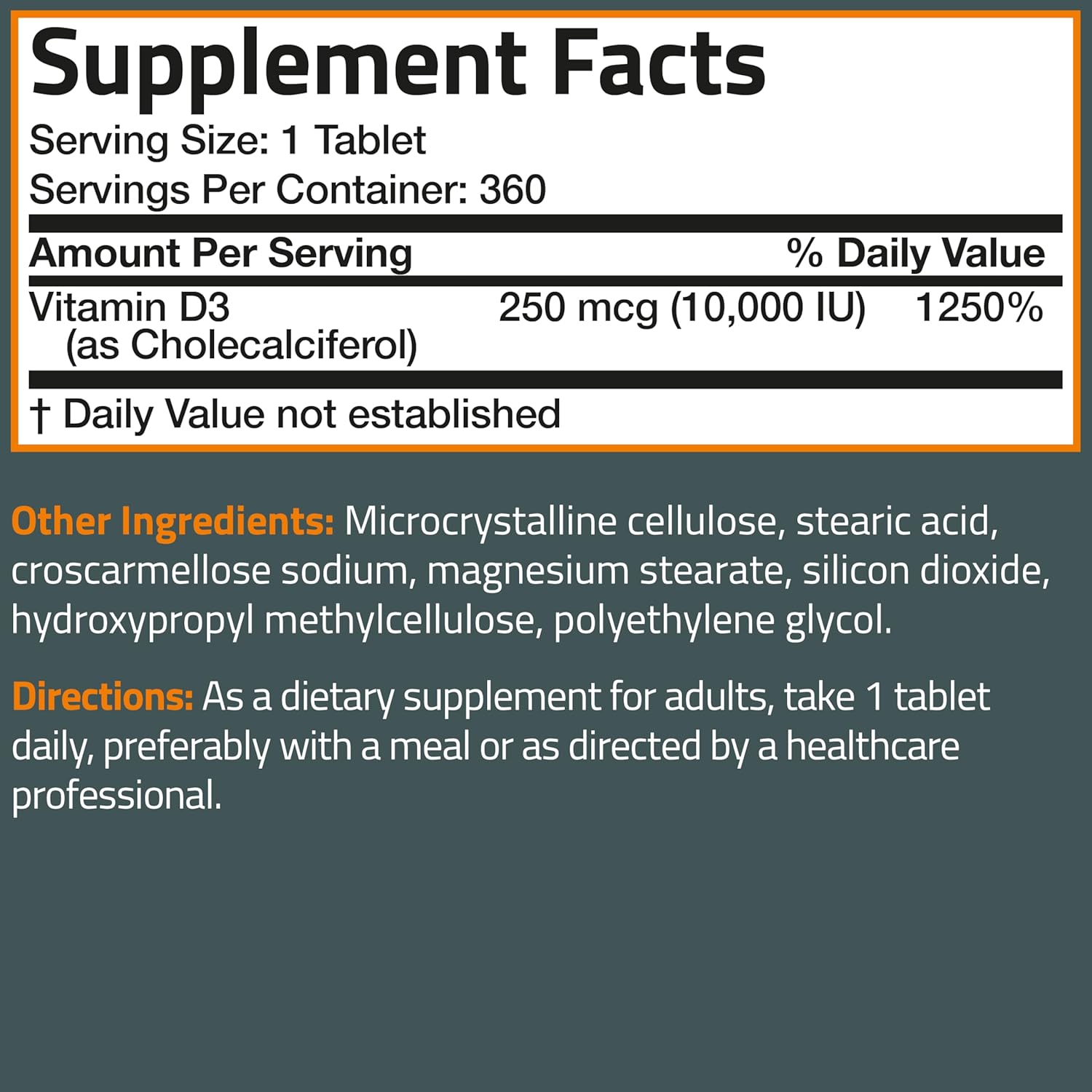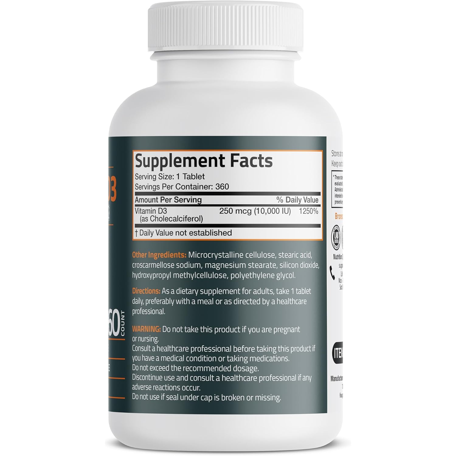 • High Quality & Great Value: Bronson Basics Vitamin D3 provides 10,000 IU of D3 per tablet in a 360 day supply bottle. We strive to support your good health and well-being through high quality supplements at the best value.