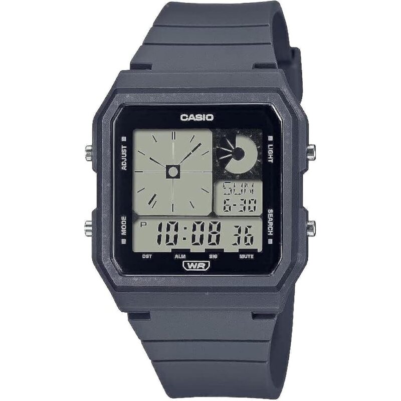- Additional features include 1/100-second stopwatch, (5) daily alarms & an hourly time signal