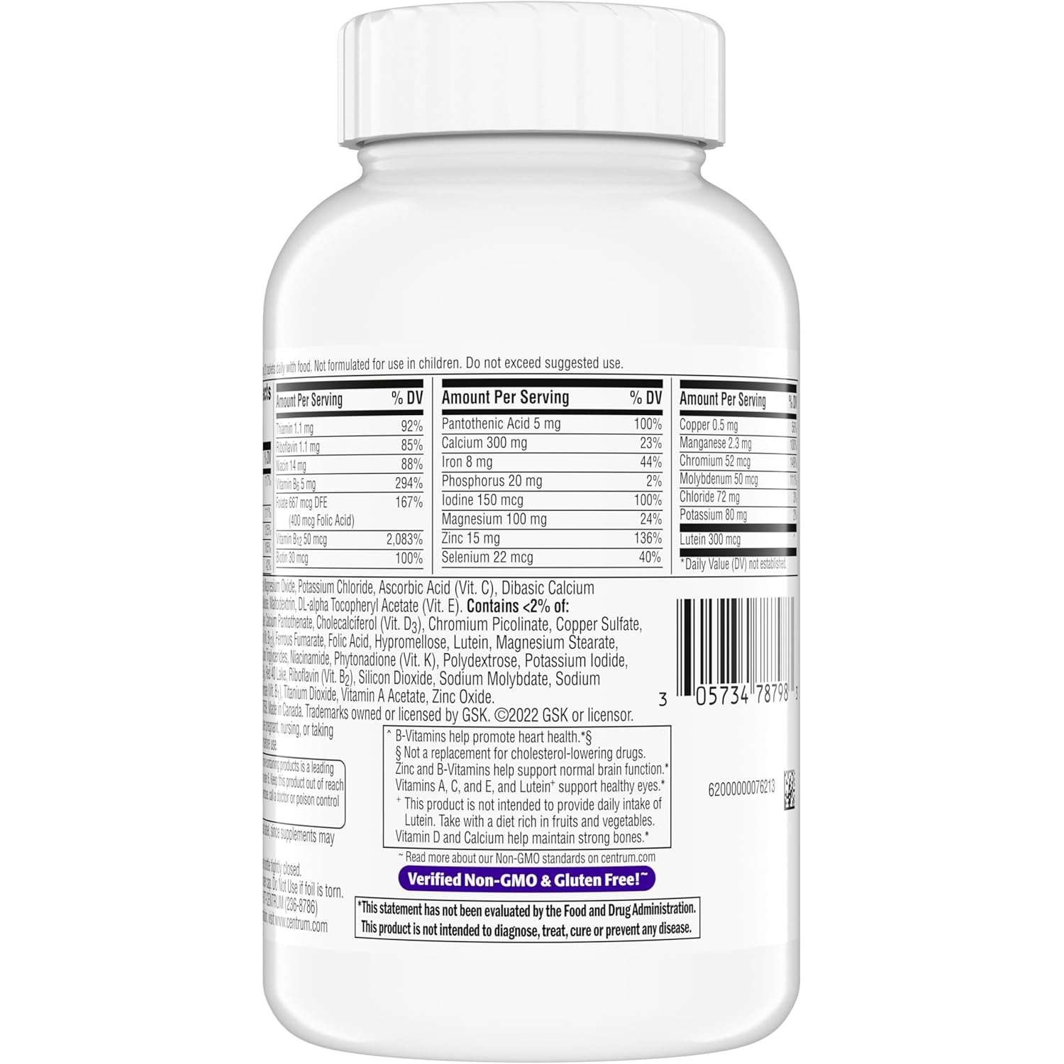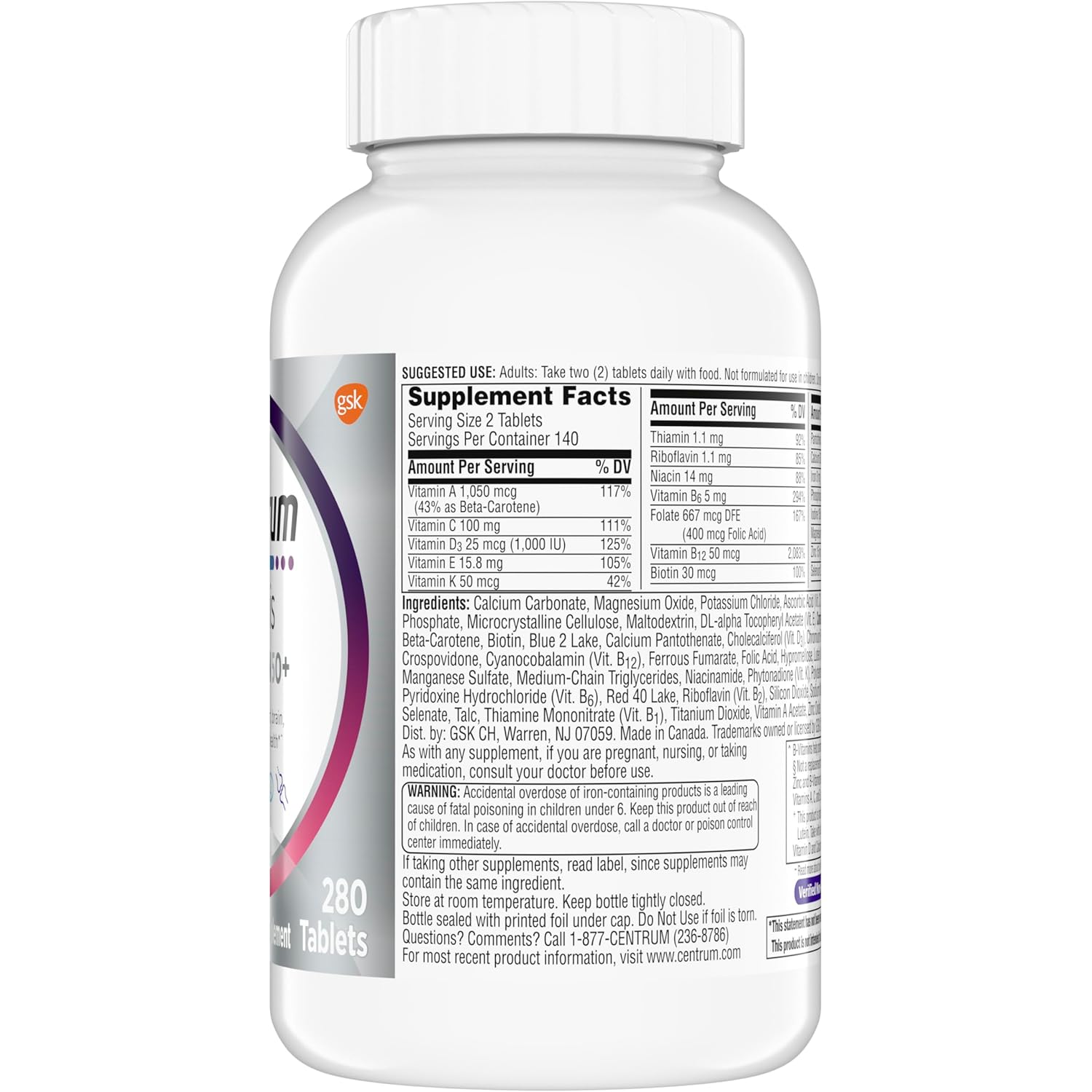 • One 280 count bottle of Centrum Silver Women’s Multivitamin for Women 50 Plus, Multivitamin/Multimineral Supplement with Vitamin D3, B Vitamins, Calcium and Antioxidant Vitamins C, E, and Beta-Carotene, and Zinc