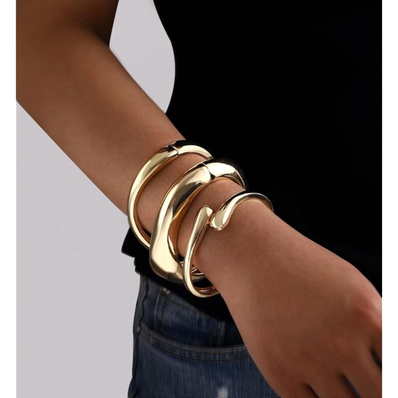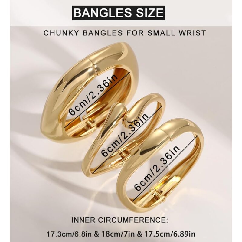 - Chunky Bangles for Women: With a diameter of 6cm/2.36in and widths of 17mm/0.66in, 5mm/0.19in, and 5mm/0.19in, inner circumference: 17.5cm/6.88in, these chunky bracelets are designed to stand out. They are the ideal choice for those looking to enhance their outfit with eye-catching jewelry.