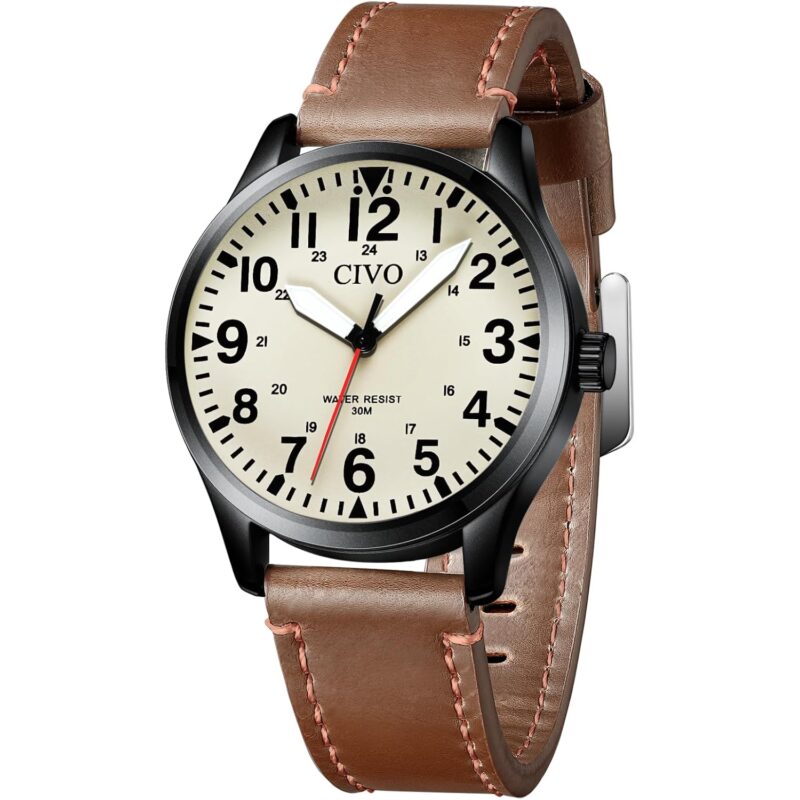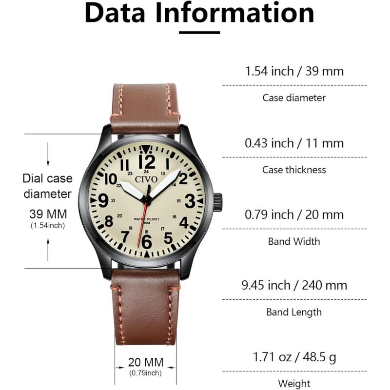 • Black Leather Men’s Watch: The watch comes with an adjustable black leather strap that blends style and comfort for all-day wear. Ideal for work, military-style activities, and casual outings. This classic and minimalist mens watch is a great gift for birthdays, anniversaries, business events, or Christmas.