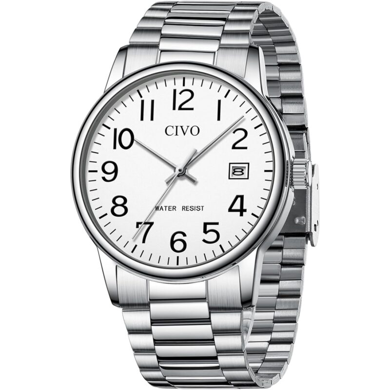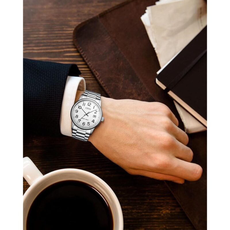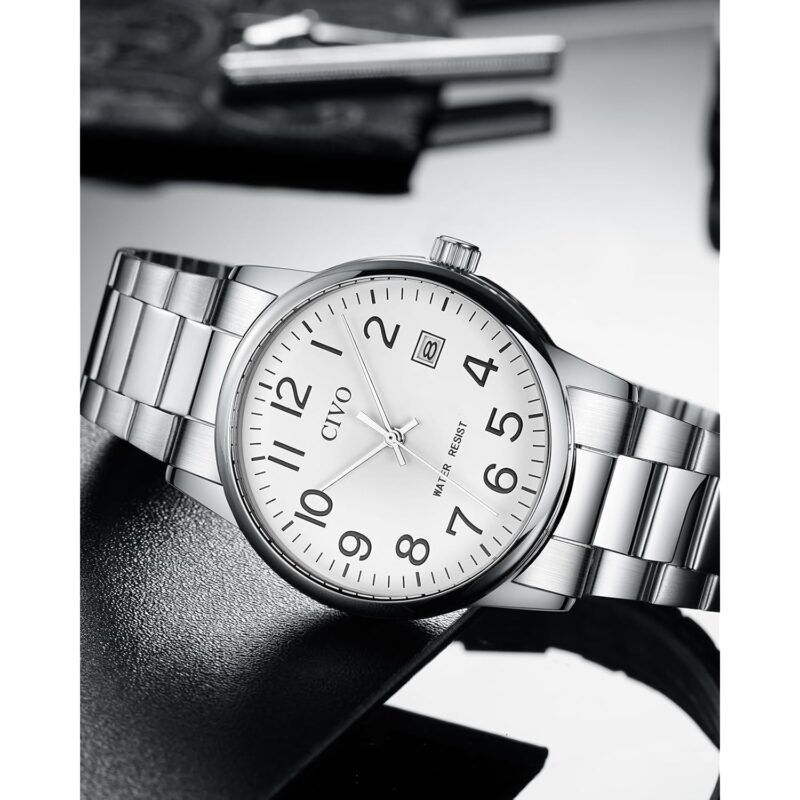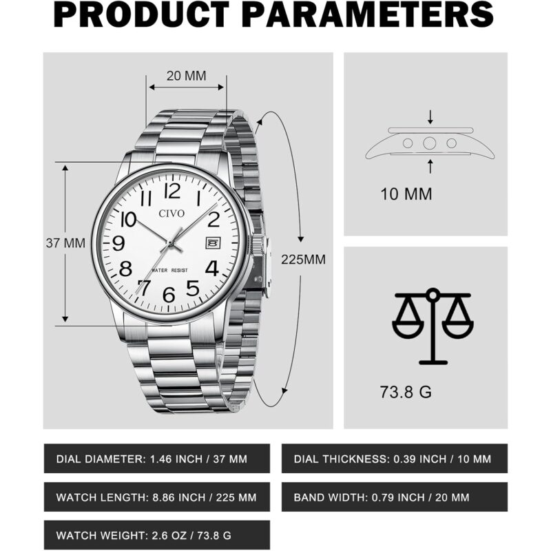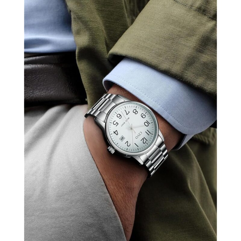 - Durable Stainless Steel Strap: Crafted with a structured stainless steel bracelet, the men’s watch includes an adjustment tool for a customized fit. Suitable for all wrist sizes, it’s designed for comfort and ease of use, making it simple to put on and take off.