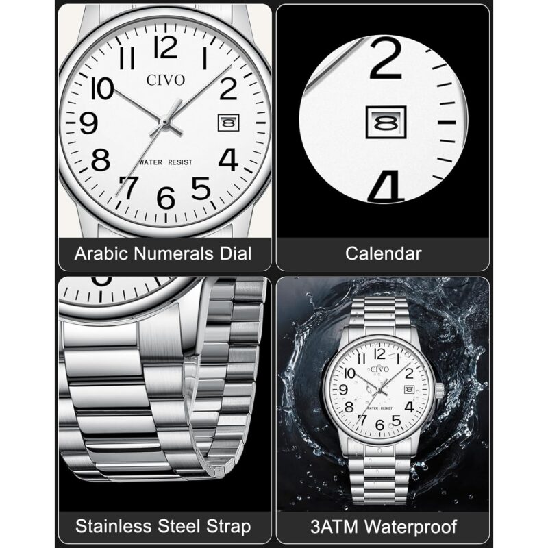 - Easy-to-Read Dial with Calendar: Featuring bold Arabic numerals and a clear calendar display, the wristwatch offers intuitive timekeeping. The easy-to-read dial ensures effortless readability, perfect for all ages, including seniors.
