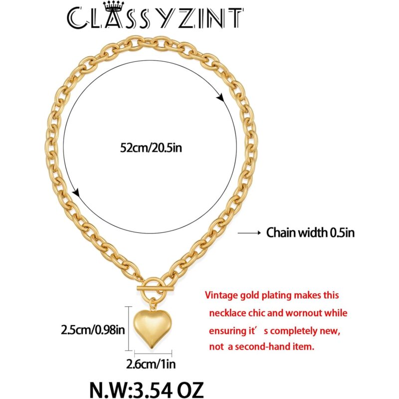 Heart Necklace: The gold heart necklace features a thick chain design and a gold heart pendant to add a touch of sophistication to your everyday look,with a thick chain length of 20.5 inches, and the heart pendant itself measures 1 inches,Chain thickness 0.5 in, weight 3.54 oz/pc.