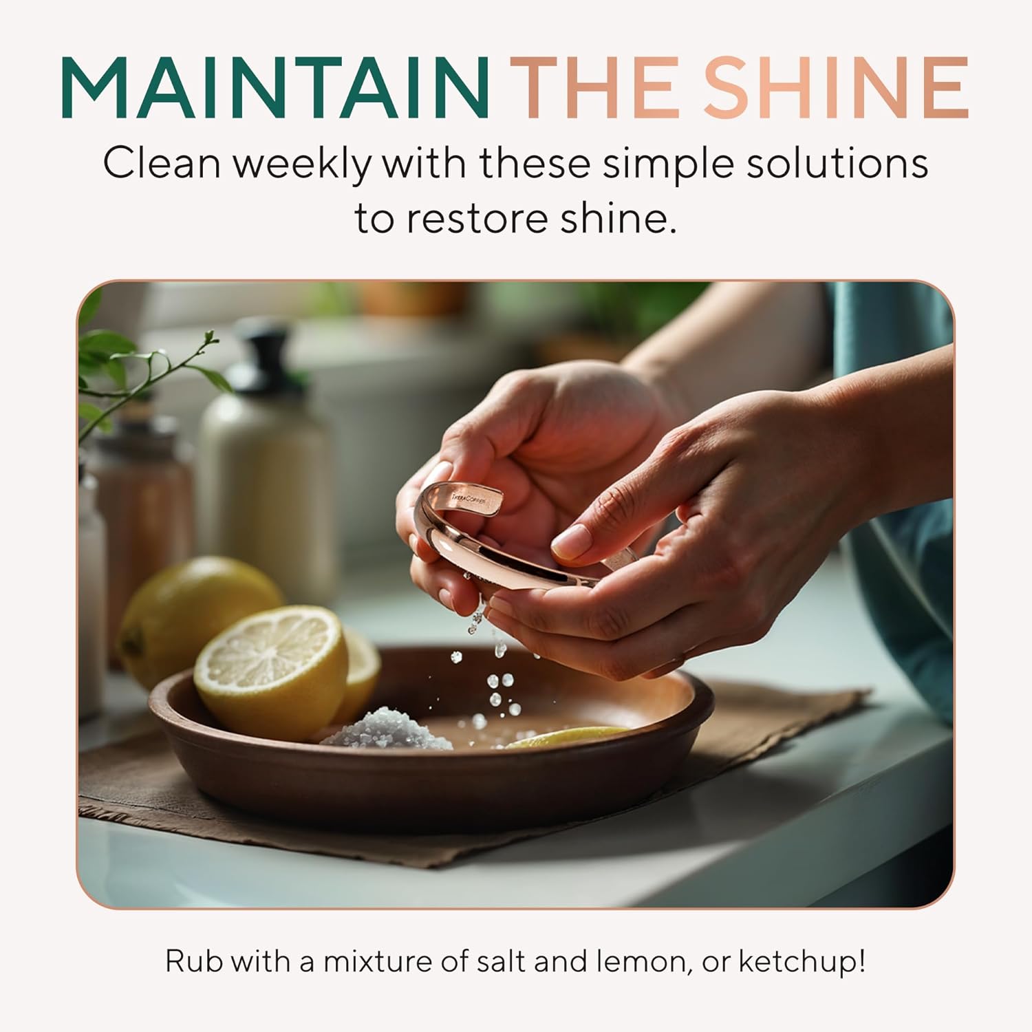 - THE PUREST COPPER: Handcrafted with 100% pure copper, our real copper bracelet is lab-tested and certified free from harmful metals like lead, nickel, cadmium, and PFAS. Many alternatives use cheap, mixed copper or plated bracelets with toxic coatings—TheraCopper is completely natural, untreated, and safe. Over time, your pure copper cuff bracelet will develop a natural patina, a hallmark of authentic, untreated copper—not a defect. Simply restore its original shine with salt and lemon juice or any copper cleaner.
