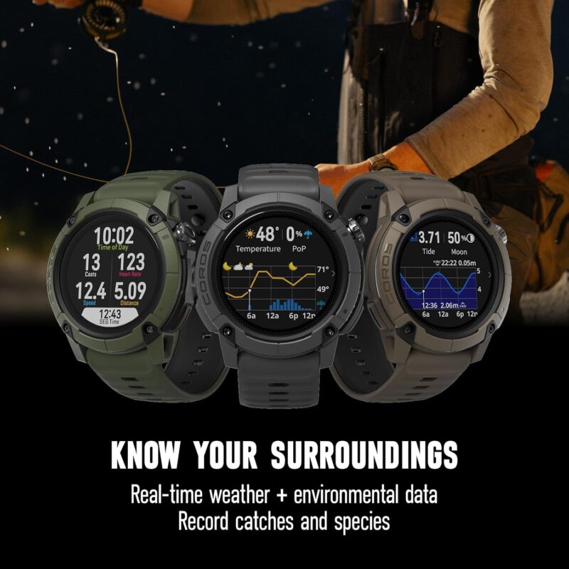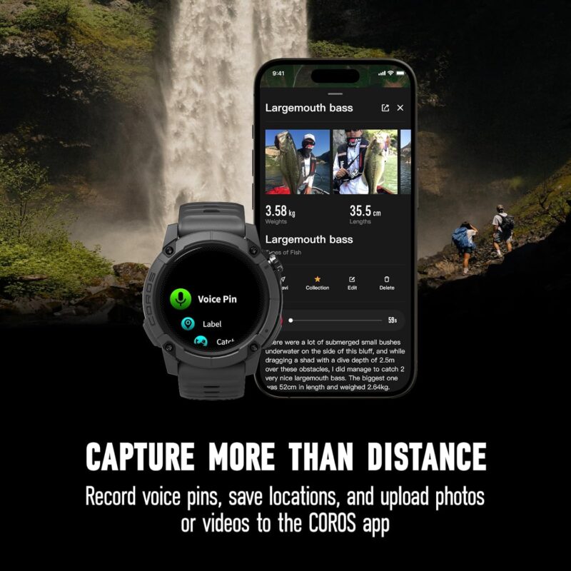 - Catch every adventure: Get real-time and forecasted data like sunrise, tides, and moon phase. Use COROS NOMAD Sports GPS Watch, the angler’s trusted Outdoor GPS Watch, to log catches and mark key spots.