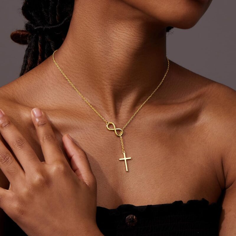 - The religious jewelry is designed with a cross shape and infinity symbol, it’s a gorgeous symbol of faith.