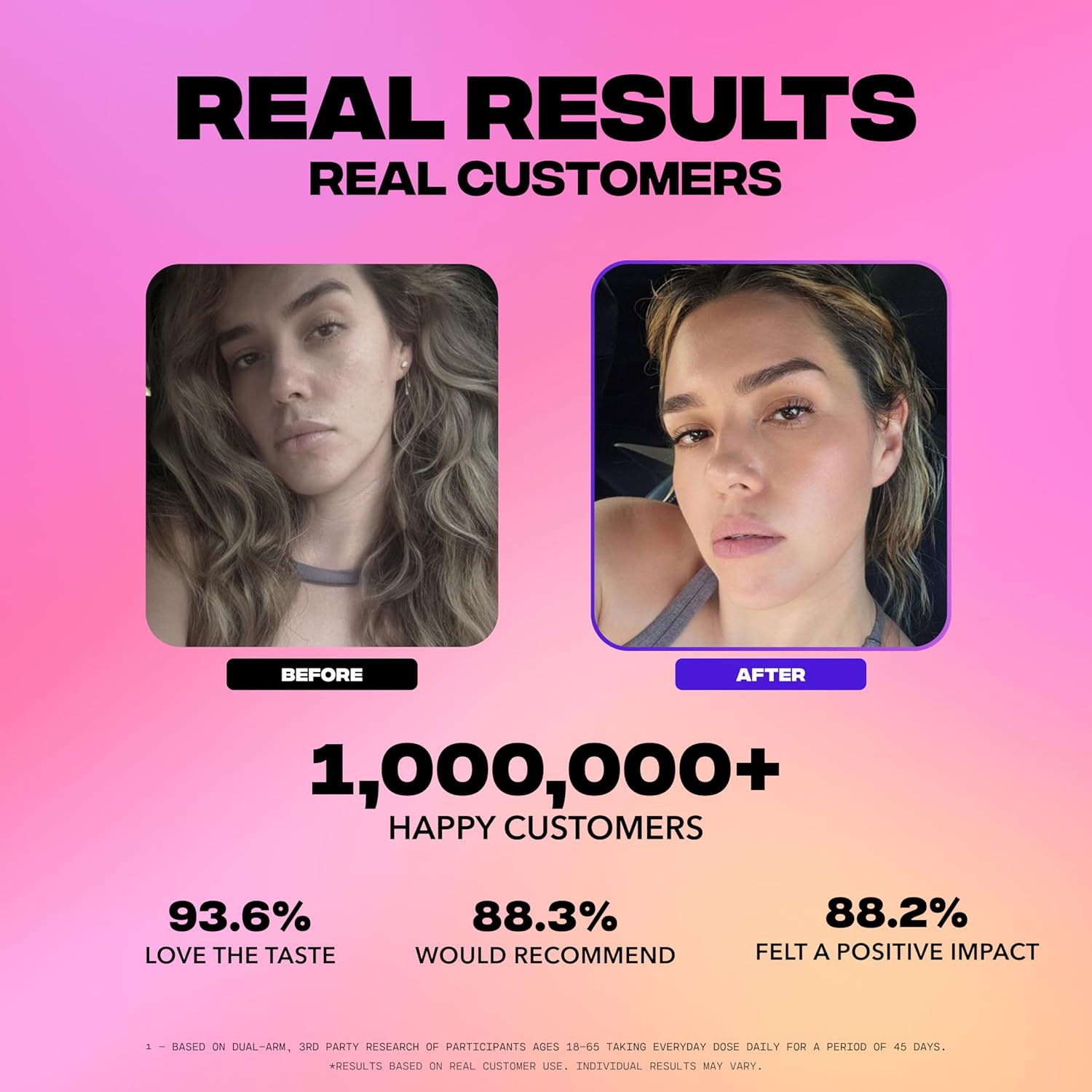 - Packed with Hydrolyzed Bovine Collagen Peptides – Everyday Dose helps improve skin elasticity, reduce wrinkles, and promote a youthful glow. Collagen also supports stronger hair and nails, healthy joints, and overall muscle vitality. Use two scoops of Everyday Dose for the optimal collagen benefit. Easily dissolves in hot or cold drinks with no flavor, odor, or clumping. Ideal for daily wellness, beauty, and recovery routines. A must-have for anyone looking to boost skin health, joint support, and anti-aging benefits from within.
