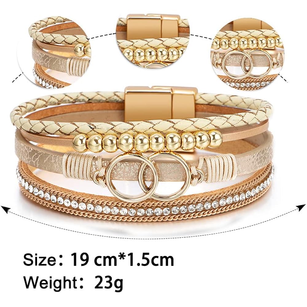 • 【UNIQUE DESIGN】 Our gorgeous and attractive leather bracelet features multiple strands of leather cords combination in different texture, adorned with movable beads and double circles. You can wear our wrap bracelet on different occasions, no matter shopping, working, party, dance or dating, this bracelet will attract a lot of attention, you’ll get more compliments.