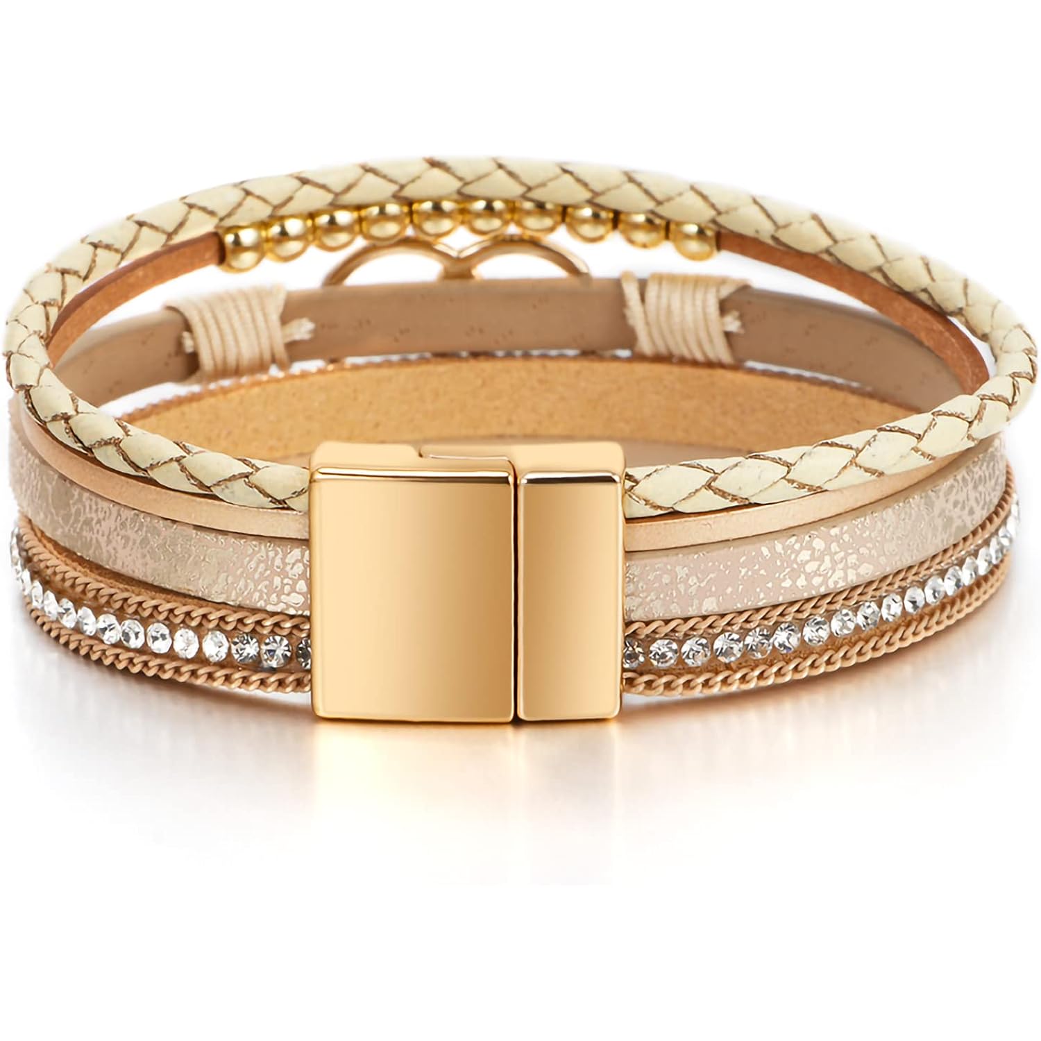 Fesciory Leopard Bracelet for Women, Boho Leather Wrap Multi-Layer Pearl Crystal Bracelet Bangle Jewelry