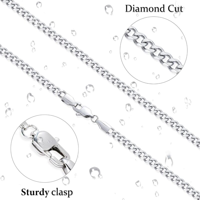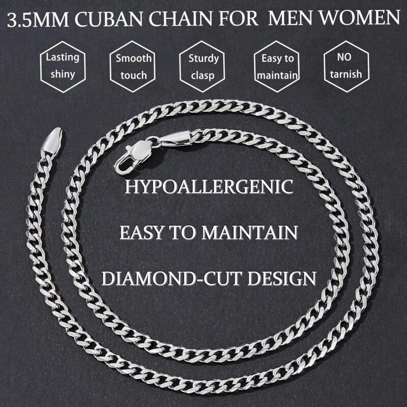 - LONG LASTING AND STURDINESS: Cuban link chain for men have long-lasting color retention, can be stored away without tarnishing. The sturdy, easy-to-open and close lobster clasp effectively extends the mens chain necklace’s service life