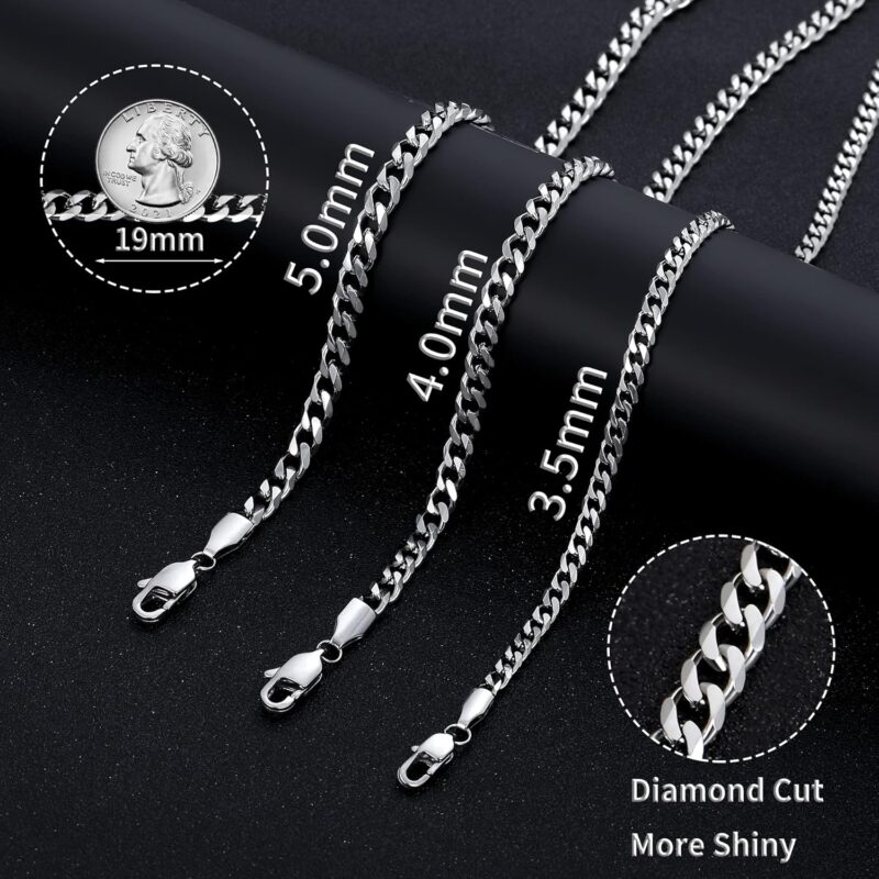 - DIAMOND CUT DESIGN: Diamond-cut beveled links are more reflective and lustrous than standard men’s chain necklaces. 3.5MM width stainless steel necklace for men, wear alone or with your favorite pendant for a personal statement