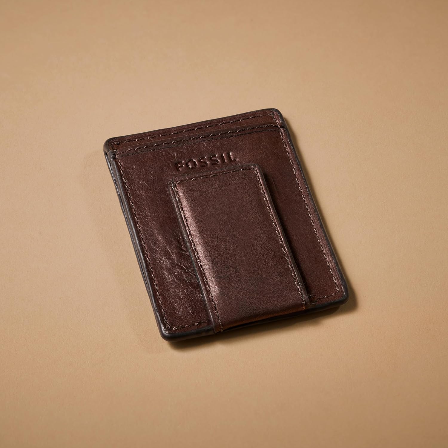 Fossil Men’s Leather Minimalist Magnetic Card Case with Money Clip Front Pocket Wallet for Men