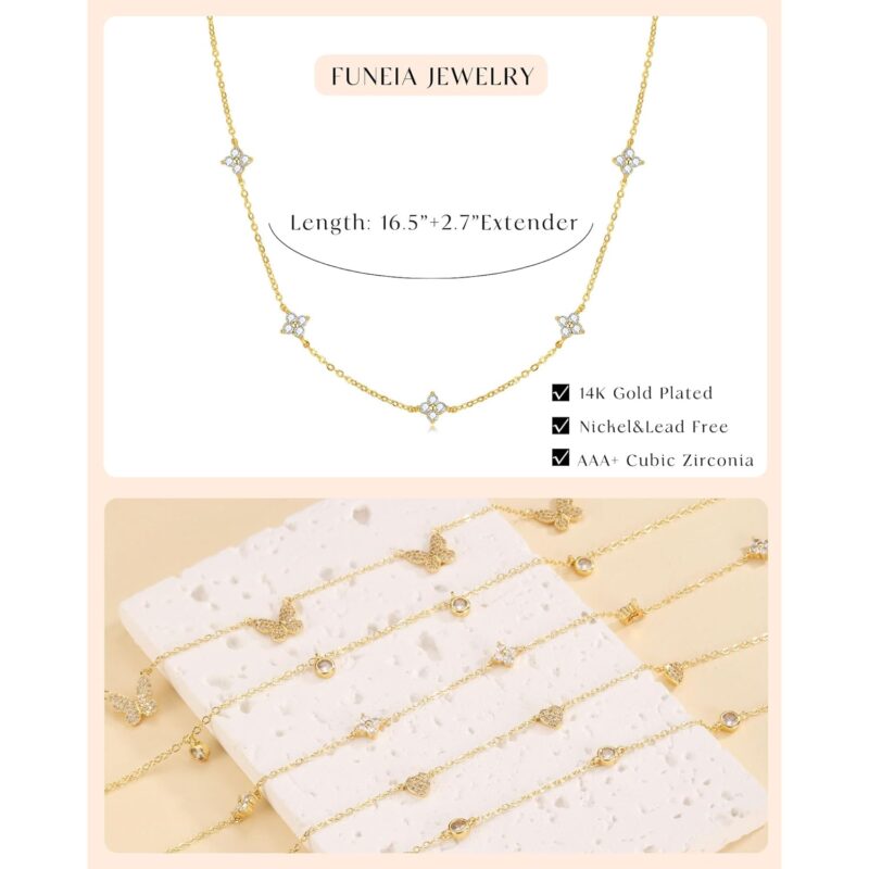 Be the first to review “FUNEIA Dainty Silver Gold Necklaces for Women Trendy Non Tarnish 14K Gold Plated Cubic Zirconia Necklace Layered Cute Butterfly Heart Station Choker Necklace Stack for Wedding Prom Brides Jewelry”