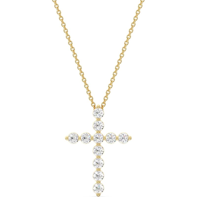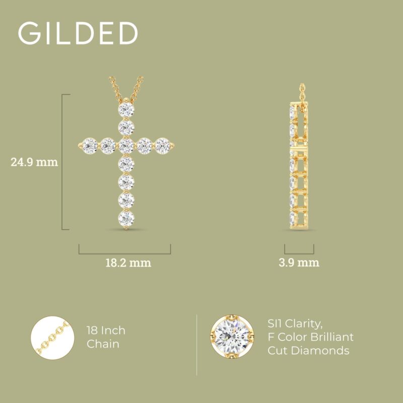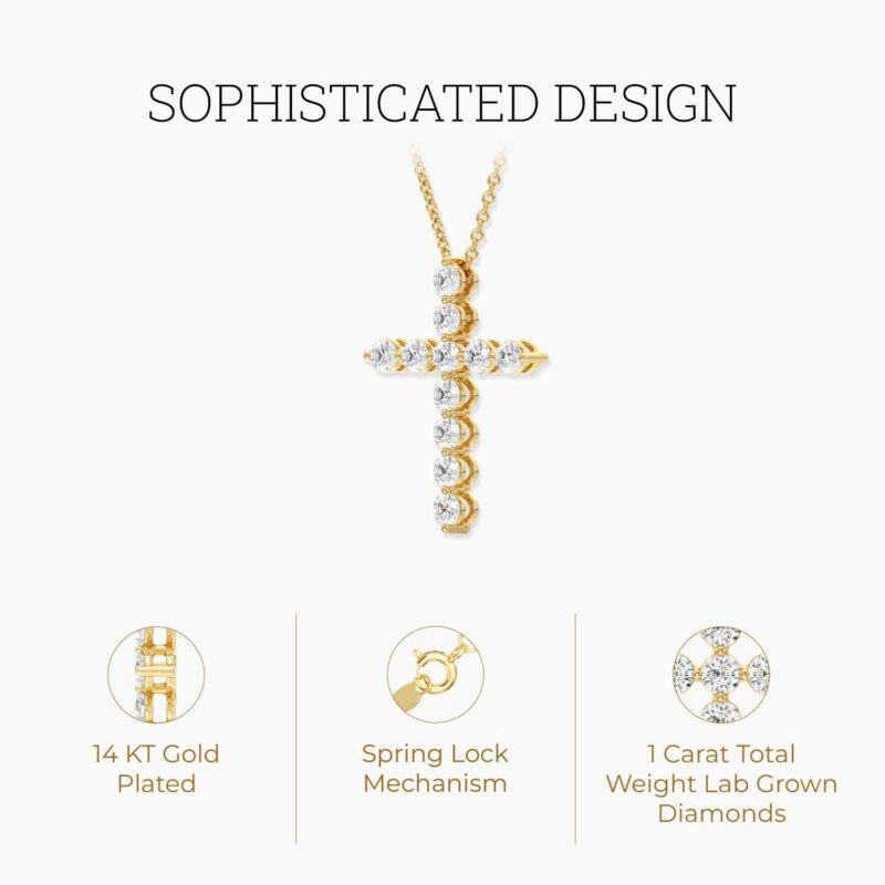 - This womens cross necklace is exquisitely crafted in sterling silver. This Gold Plated sterling silver cross necklace boasts an impressive 1 carat total weight of lab grown diamonds (F color and SI1 clarity).