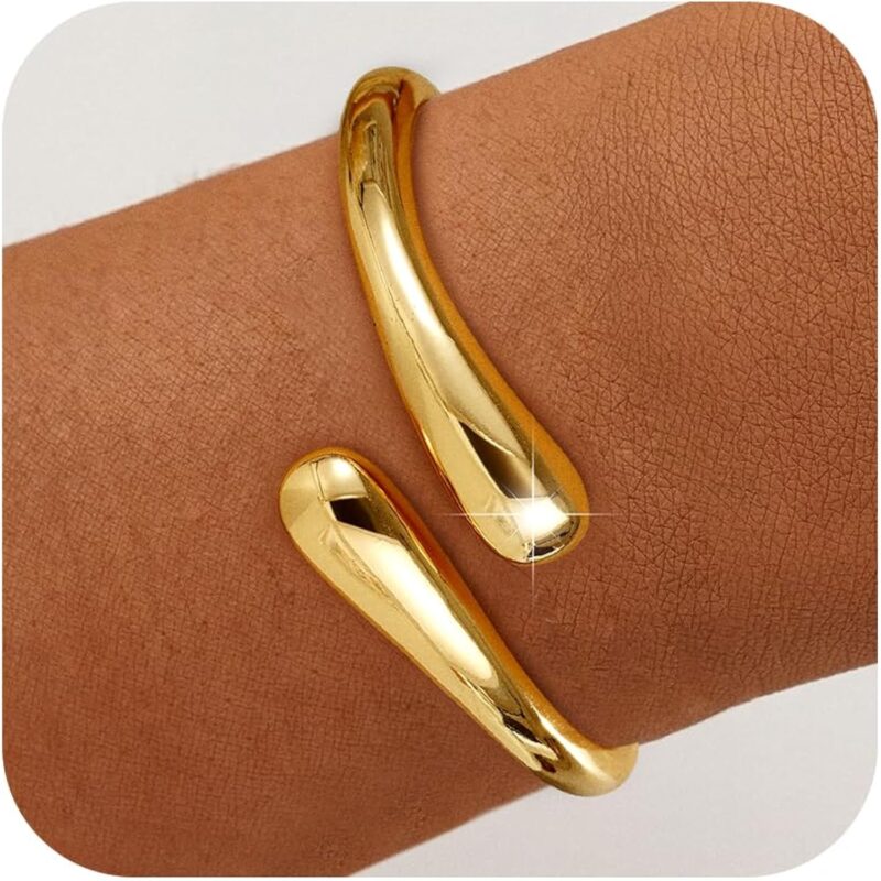 - Design: Gold bangle bracelet features a sleek, modern, and chunky design, making it the perfect accessory to elevate any outfit. Its unique hug shape adds a touch of sophistication and elegance, making it ideal for women and teens alike who appreciate fashion-forward jewelry