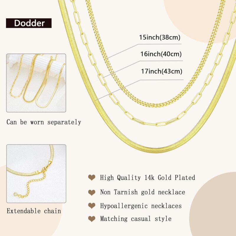 - Hypoallergenic Material: 14K gold plated and High quality brass material, gold layered chain necklaces are no nickel and no lead, hypoallergenic, long lasting color and safe for sensitive skin