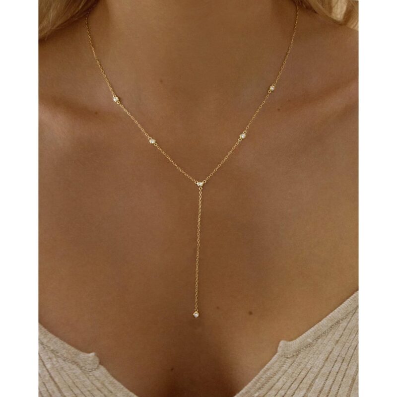 Lariat Necklace Design:Our delicate long layering lariat necklace is an easy everyday necklace that packs a punch of style. It is a classic deep plunge necklace that will pair well with a v-neckline and layer nicely with other chain necklaces;
