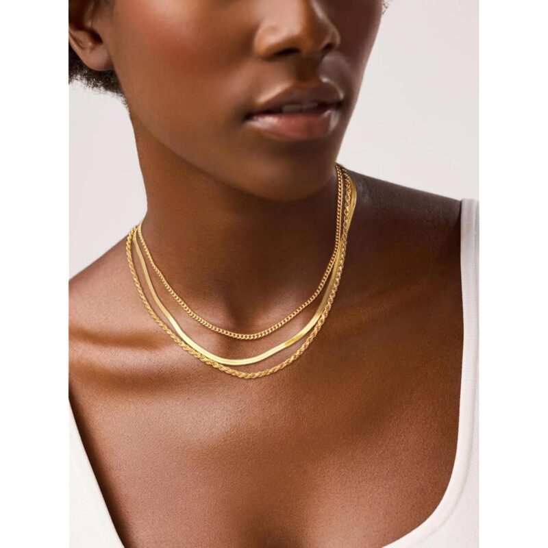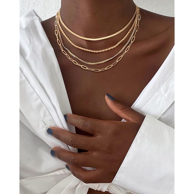 ✦Layered Gold Necklaces Set✦The daity layered gold necklaces includes 4 chains gold rope chain cuban link herringbone snake chain paperclip chain necklaces.These gold necklaces stack are versatile and looks great with both casual and formal wear,and you can wear either single or stacked to match different styles of clothing. This gleaming elegant layering gold necklaces for women will give you a stunning and delicate look and perfect for adding a touch of elegance to any outfit