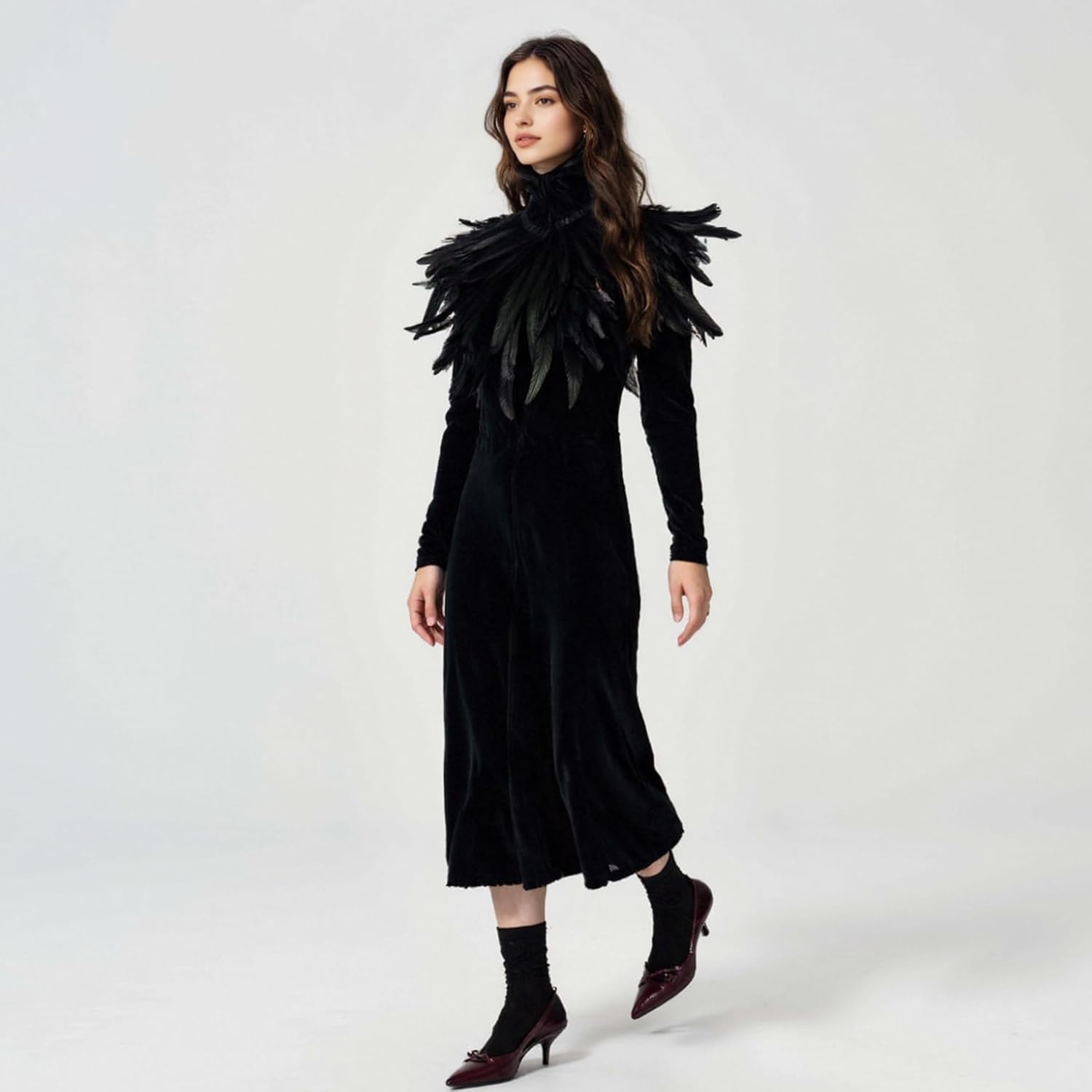 HOMELEX Black Witch Feather Collar Crow Shawl Costume Halloween Swan Wings Accessories Cape for Women