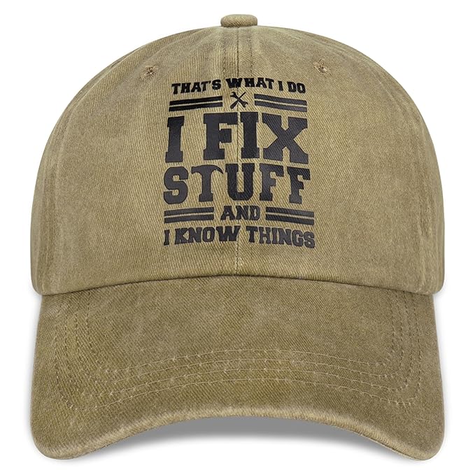 - Unique Gift Idea: Printed with the empowering phrase “THAT’S WHAT I DO, I FIX STUFF AND I KNOW THINGS” on the front, this cap makes a distinctive and thoughtful gift for fathers, brothers, friends, or colleagues who enjoy DIY projects, tinkering, or simply have a knack for fixing things. It’s an ideal present for birthdays, Father’s Day, holidays, or any occasion where you want to celebrate their skills and knowledge.
