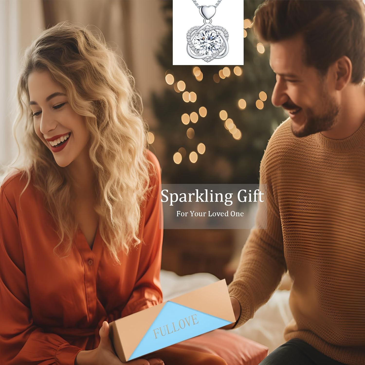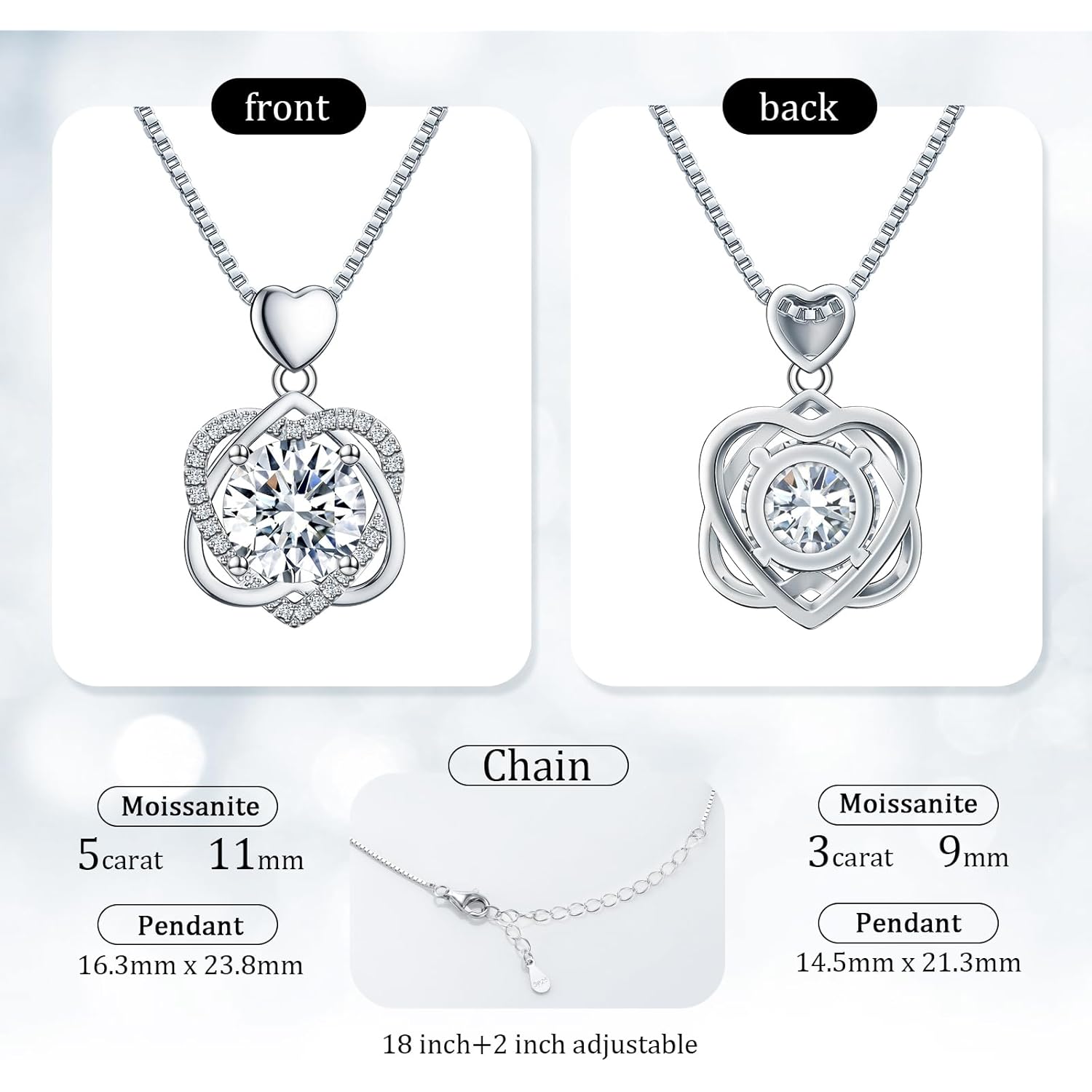 InfinityLove Heart Necklaces for Women, 5-3 Carats Moissanite, Sterling Silver Pendant Jewelry, Anniversary Birthday Gifts for Wife, Girlfriend, Daughter, Mom