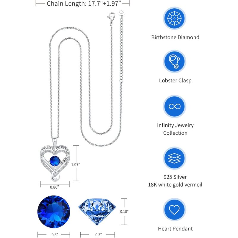 • Love Necklace Engraving ” I Love You for Always and Forever” : The sapphire diamond necklace is engraved with a love sayings “I Love You for Always and Forever” that could tell your deeply love and promise to your loved ones. it is a romantic birthday/wedding anniversary gifts for wife/girlfriend, and also a unique birthday gift for mom/daughter/Grandma/sister/friends.