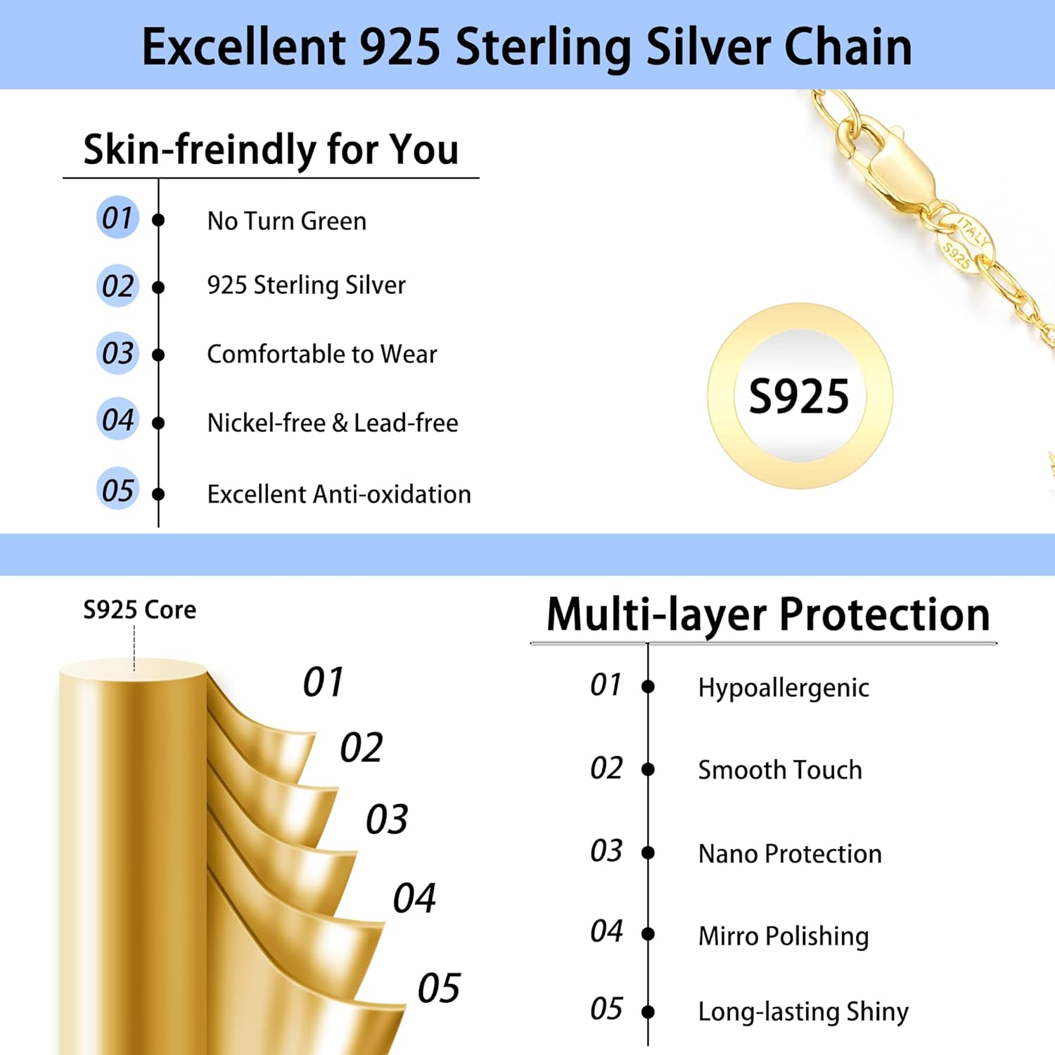 - Comfortable to Wear: This chain for women is 925 sterling silver base with 18K gold plated, which will both stay consistent and reflective. A smooth and flowing surface, brings perfect comfortable wear feel for You.