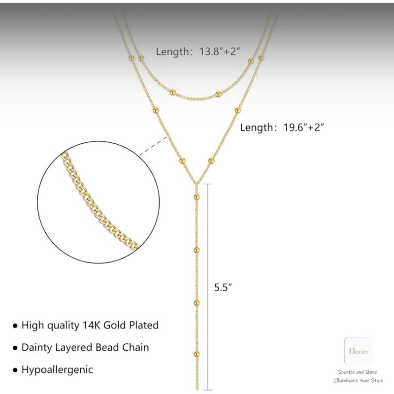 - Y GOLD NECKLACES: This Gold layered necklace is a simple and stylish piece of jewelry that can enhance the overall look with its unique design and sparkling gold beads. Whether for everyday wear or special occasions, it exudes confidence and charm for women.