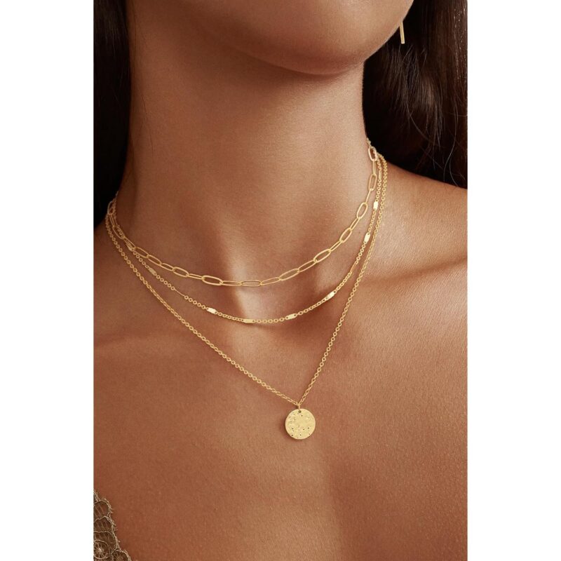 - Elegant 3-Piece Gold Necklace Set: This set includes three beautifully crafted gold necklaces for women, designed to be worn together or separately. A modern addition that enhances both casual and formal outfits.