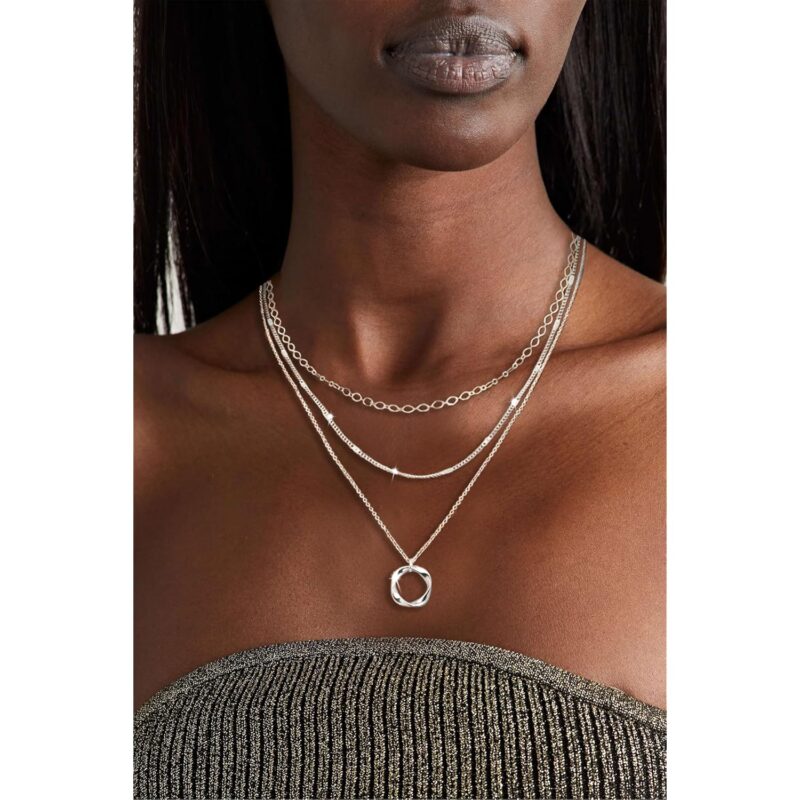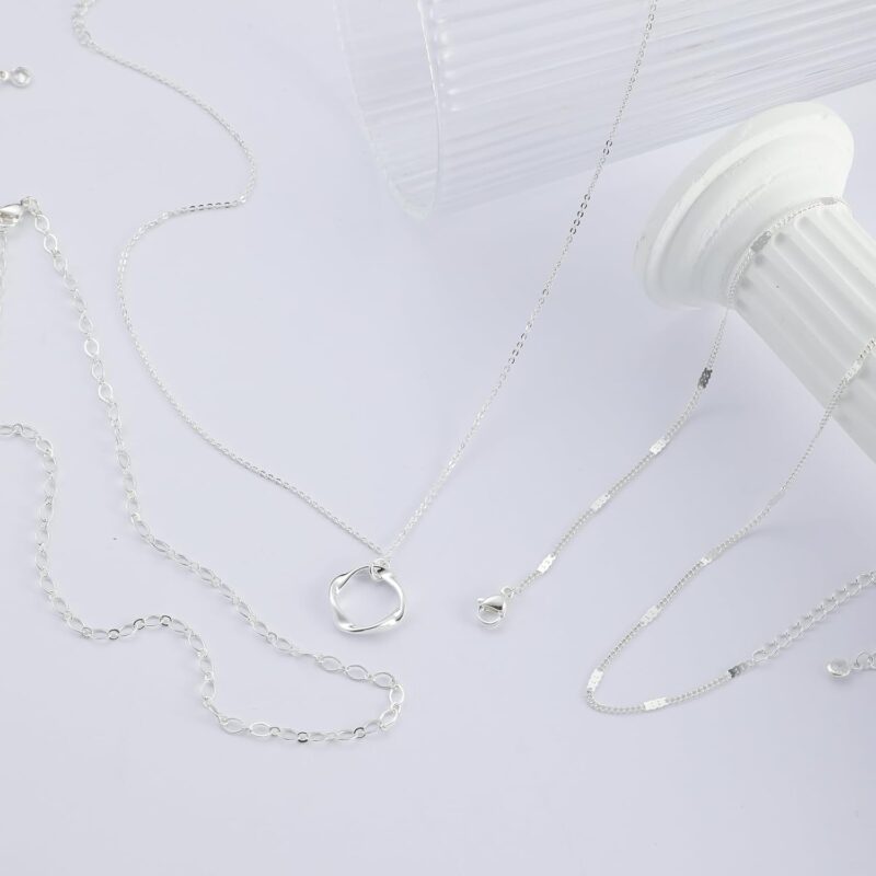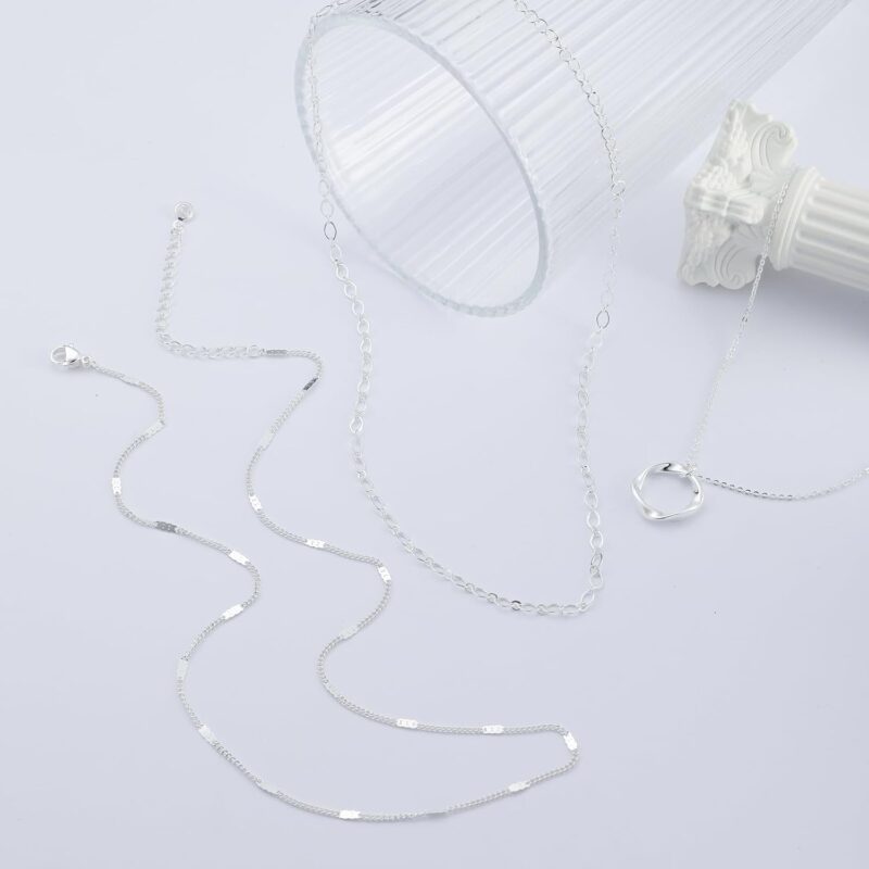 Layered Silver Necklaces Set:Set includes:Paperclip Chain Necklace、Strip Chain Necklace、Twisted Circle Pendant Necklace
