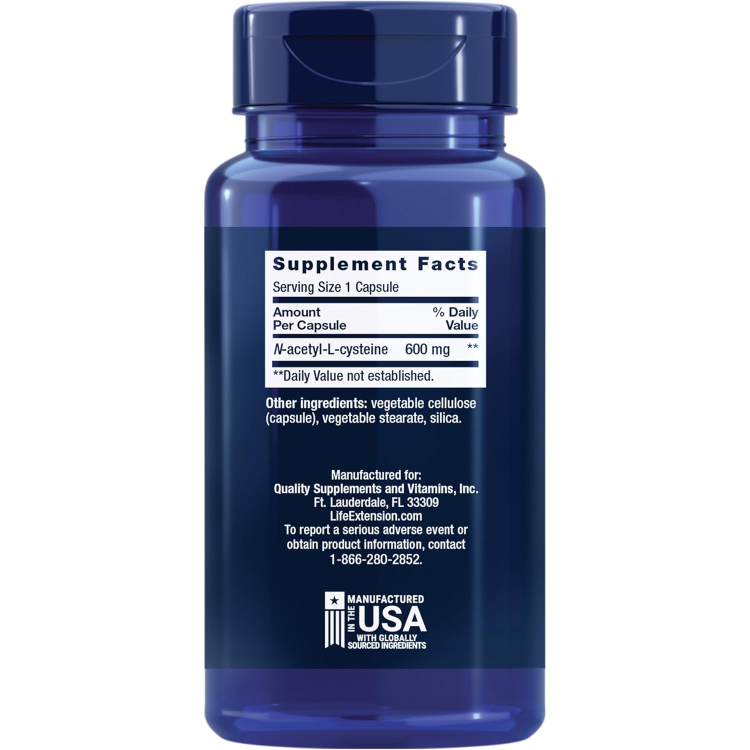 Life Extension N-Acetyl-L-Cysteine (NAC), Immune, Respiratory, Liver Health, NAC 600 mg, Potent antioxidant Support, Free-radicals, Easy to Absorb, 60 Capsules
