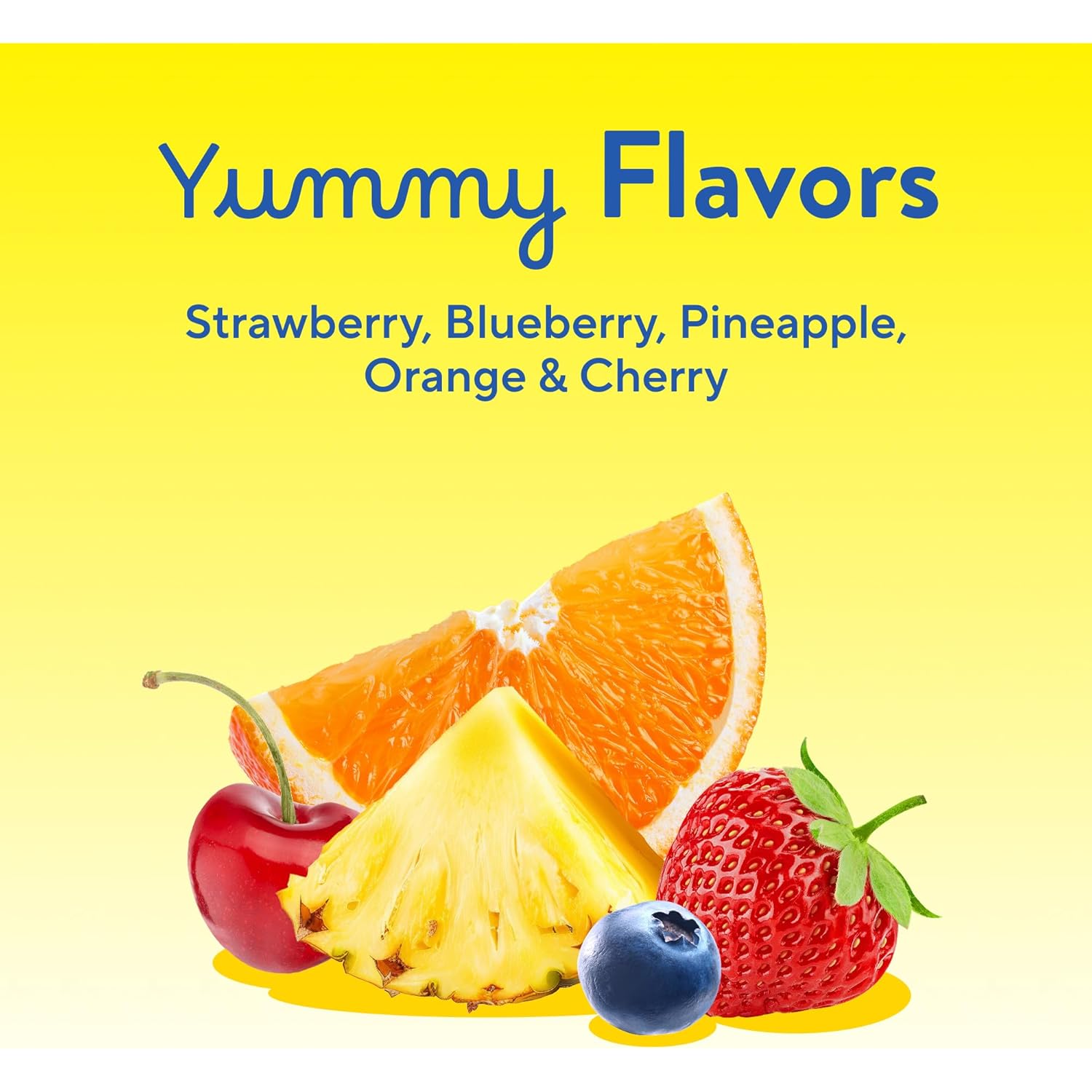 - Delicious gummy bear vitamins come in yummy cherry, strawberry, orange, pineapple and blueberry flavors.