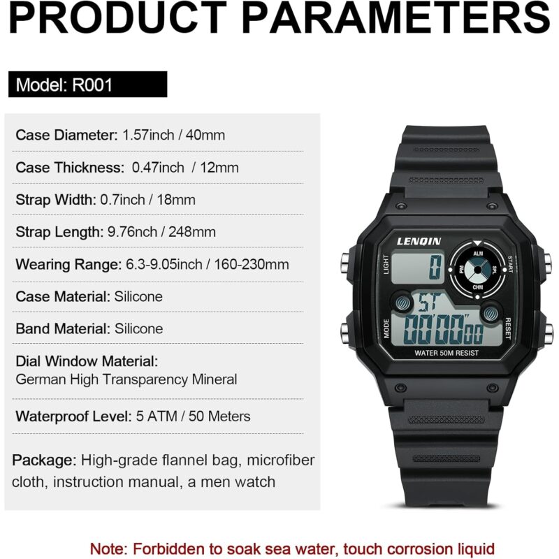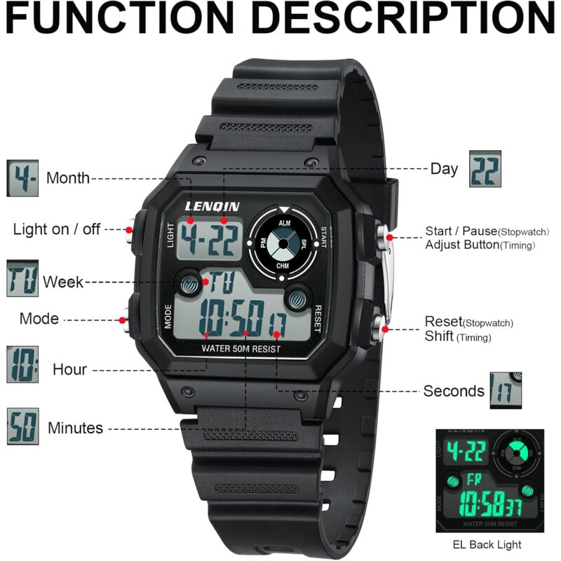Be the first to review “LN LENQIN Mens Watches Digital Sports Watch Ultra-Thin Military Waterproof Wrist Watch for Men Stopwatch with LED Backlight/Alarm/Timer/Date” Cancel reply